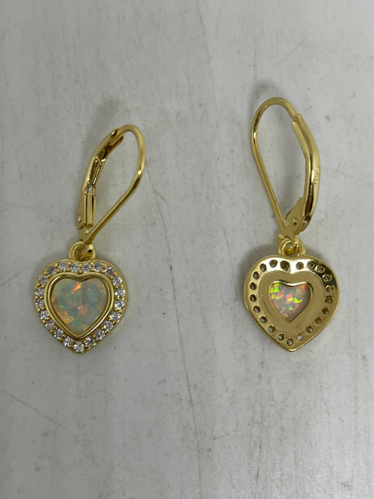 Vintage White Opal Heart Earrings Golden 925 Sterling Silver