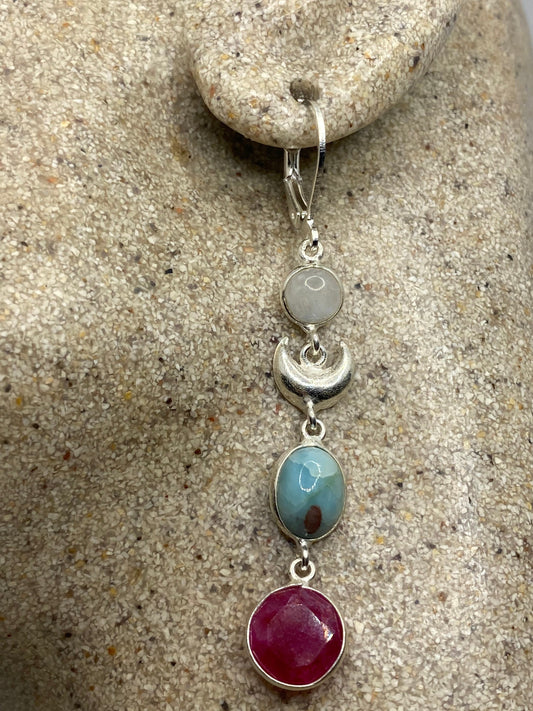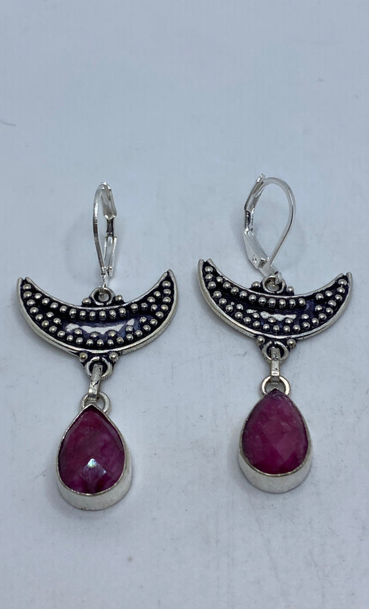 Vintage Raw Ruby LeverBack 925 Sterling Silver Wiccan Moon Earrings