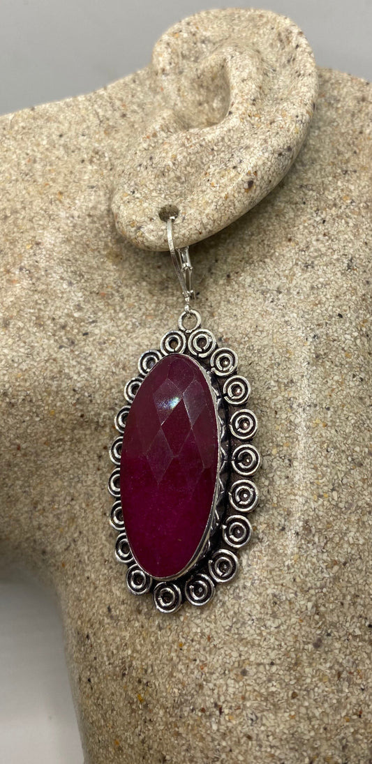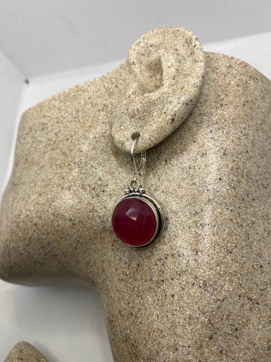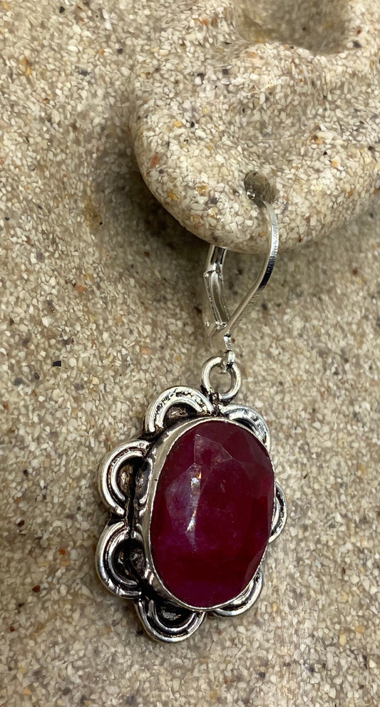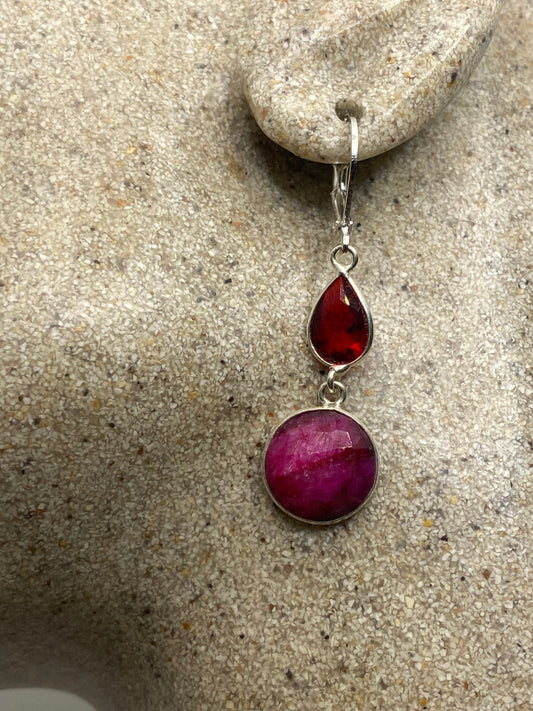 Vintage Raw Ruby LeverBack 925 Sterling Silver Earrings