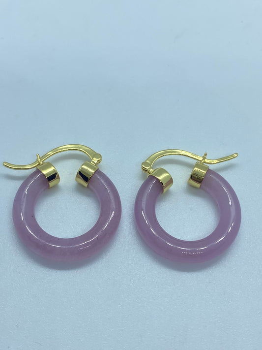 Vintage Genuine Rose Quartz Hoop Earrings