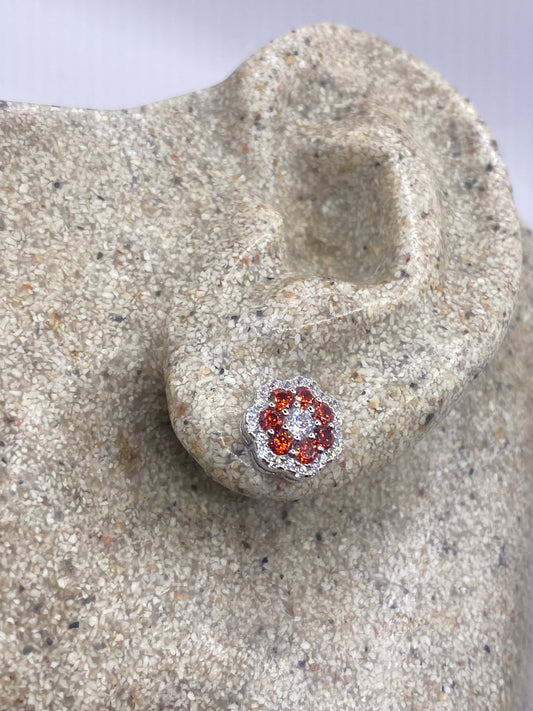 Vintage Cubic Zirconia Earrings 925 Sterling Silver Stud Button