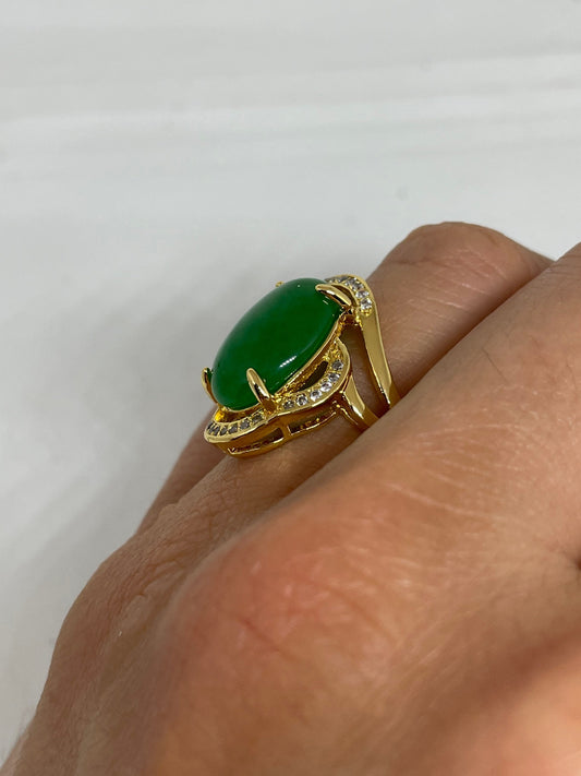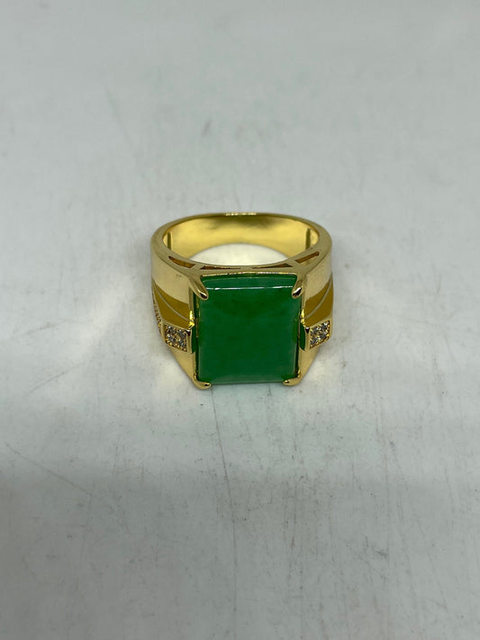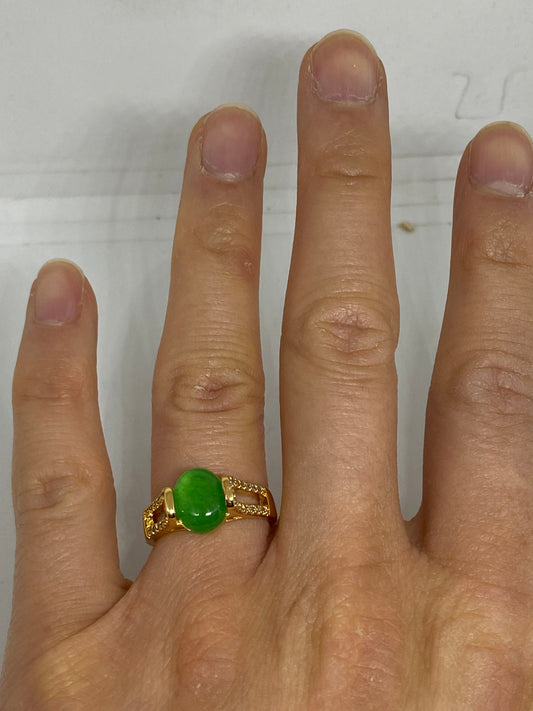 Vintage Lucky Green Nephrite Jade Golden Ring