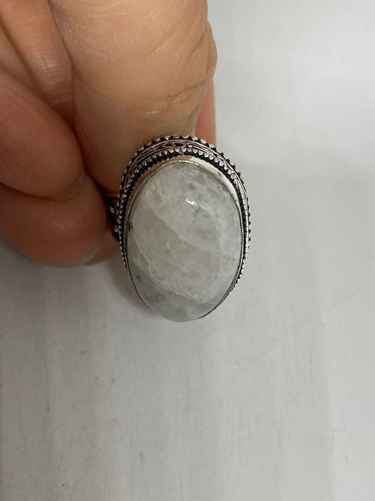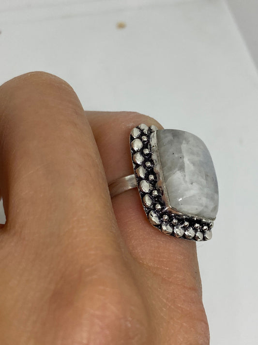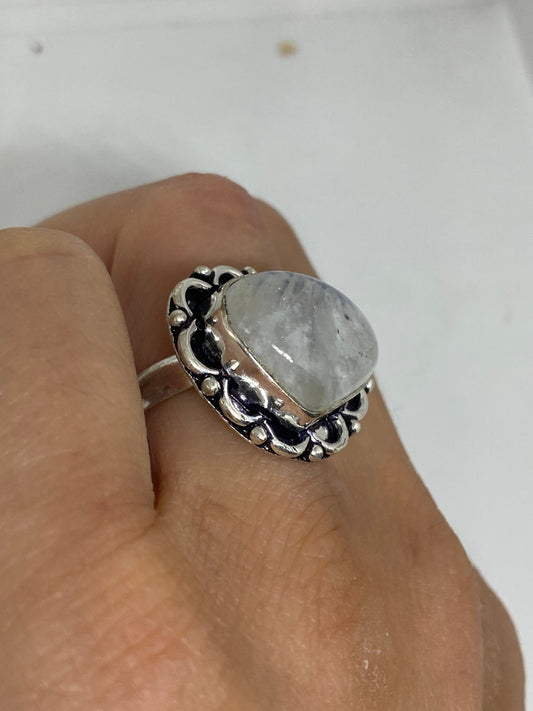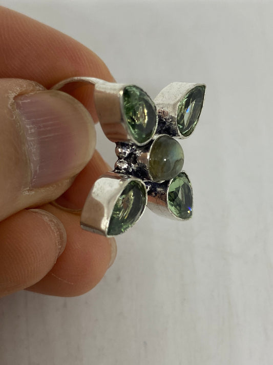 Vintage Blue Green Labradorite and Green Amethyst Stone Silver Ring