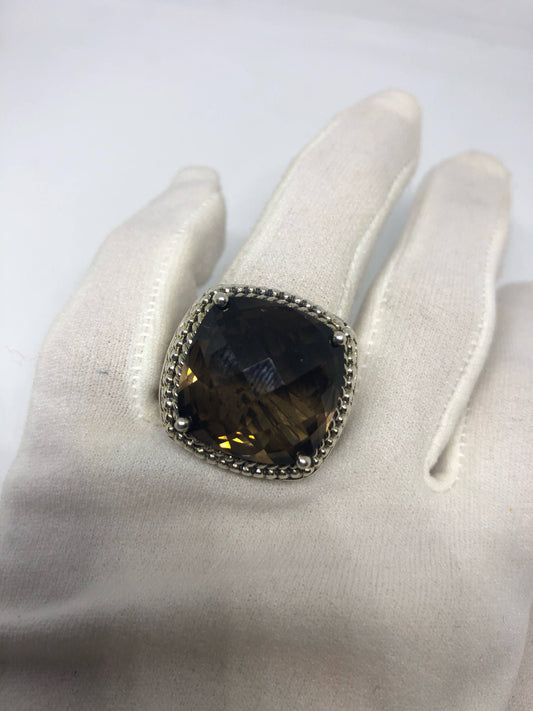 Vintage Smoky Topaz Ring 925 Sterling Silver