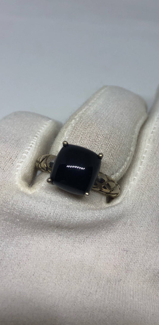 Vintage Genuine Black Onyx 925 Sterling Silver Ring