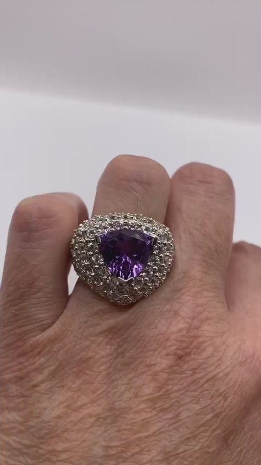 Vintage Purple Amethyst Pink Tourmaline Cocktail Ring 925 Sterling Silver