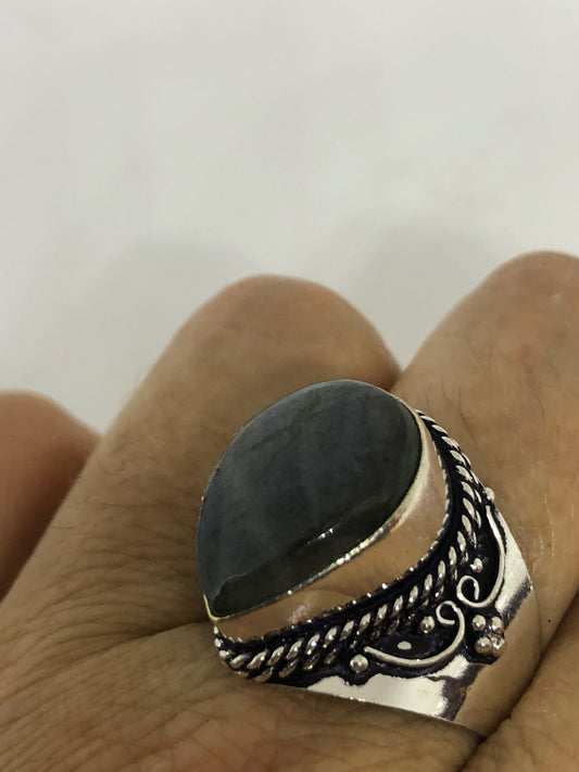 Vintage Large Blue Green Labradorite Stone Silver Ring