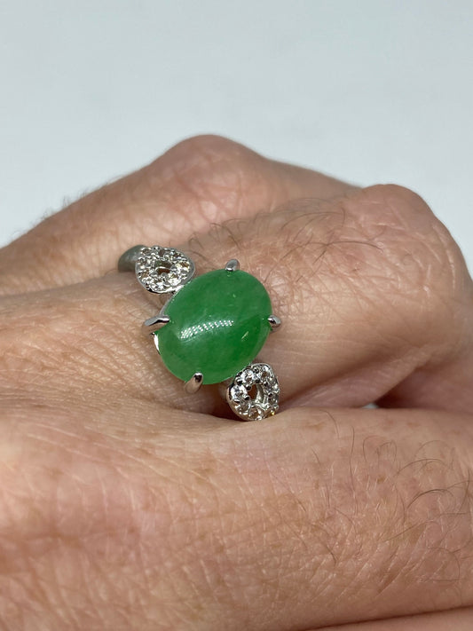 Vintage Genuine pale Blue calcedony 925 Sterling Silver Rhodium Ring