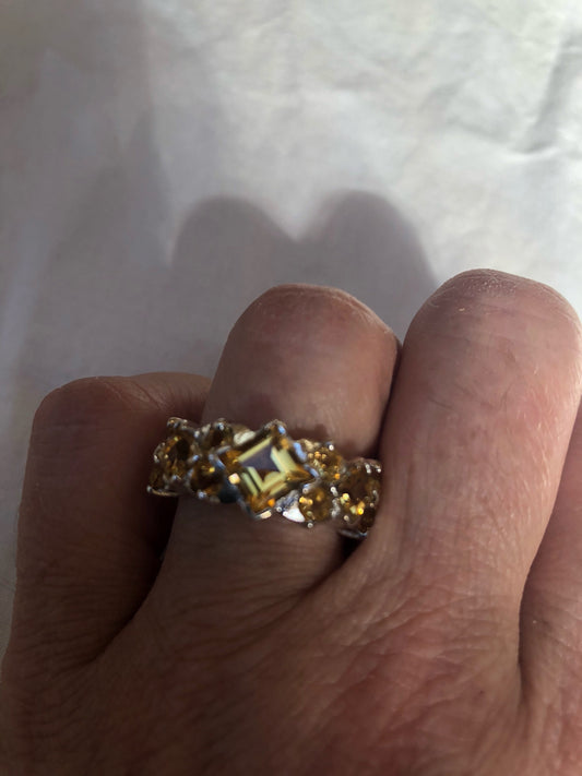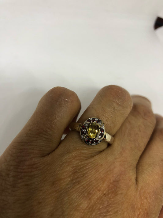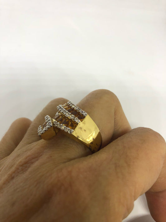 Vintage Handmade Golden Genuine Citrine 925 Sterling Silver Gothic Ring