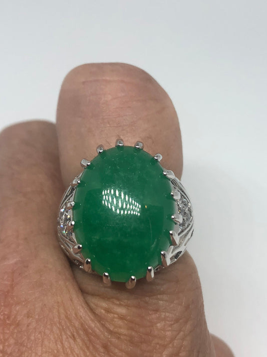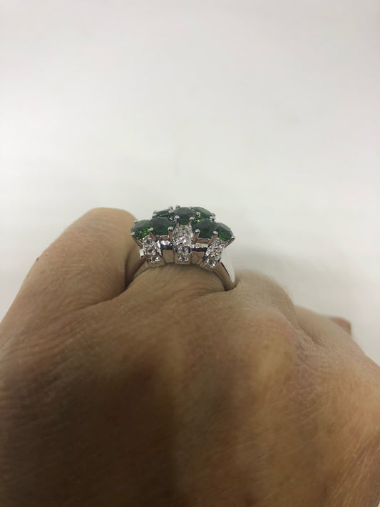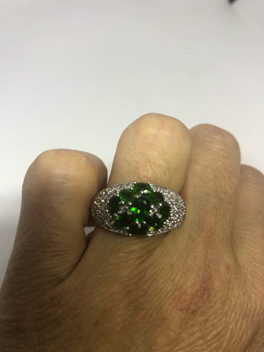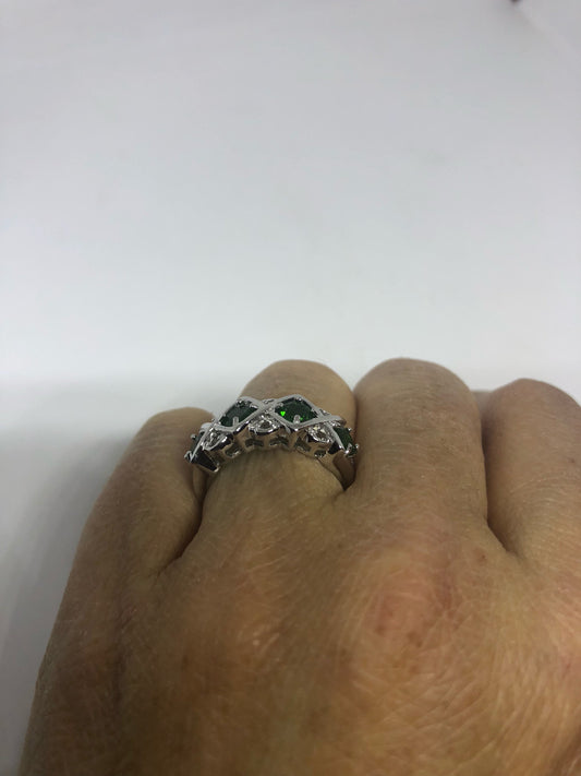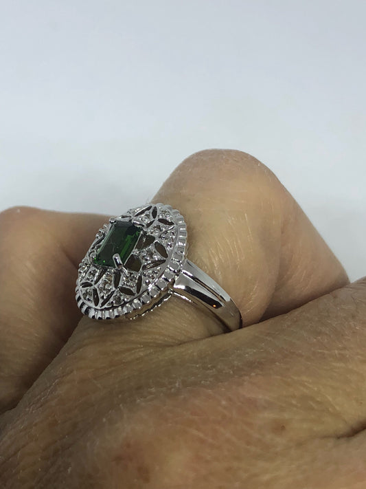 Vintage Handmade Green Chrome Diopside Filigree Setting Sterling Silver Gothic Ring