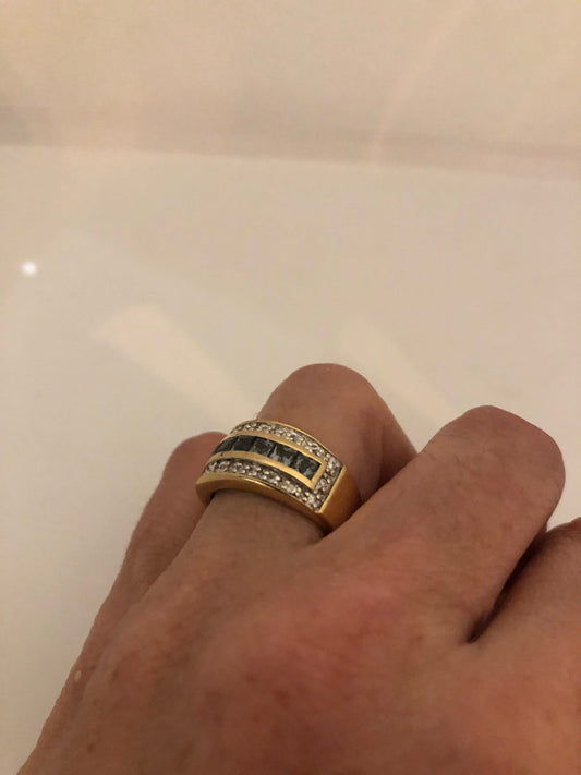 Vintage Handmade Genuine Dark Blue Flourite and White Sapphire 925 Sterling Silver Deco Ring