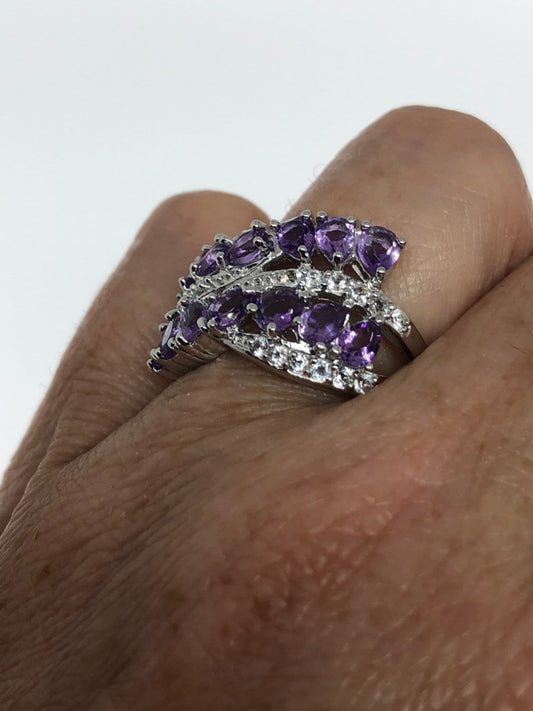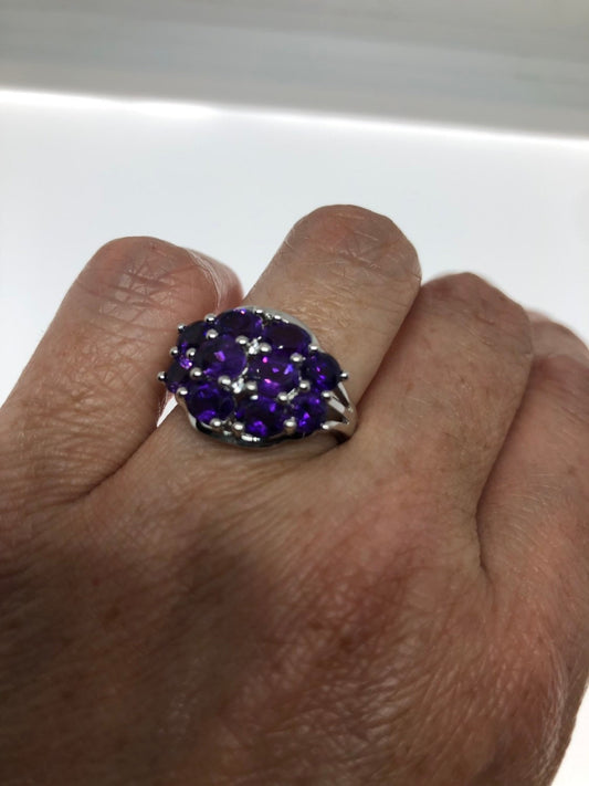 Vintage Handmade Deep Purple Genuine Amethyst Setting 925 Sterling Silver Gothic Ring