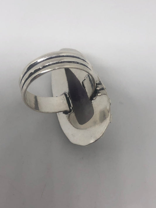 Vintage Genuine Blue White Rainbow Moonstone Ring