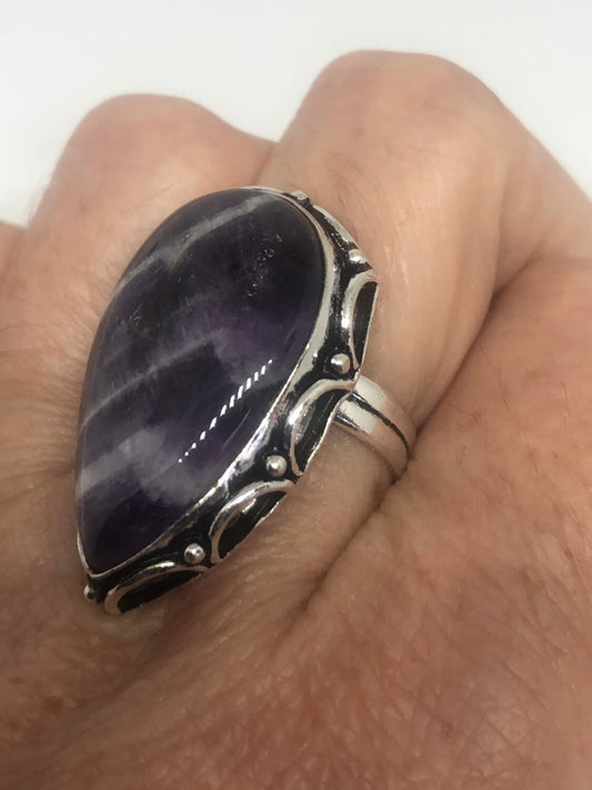 Vintage Deep Blue Opal Vintage Art Glass Ring About an Inch and a half Long Ring