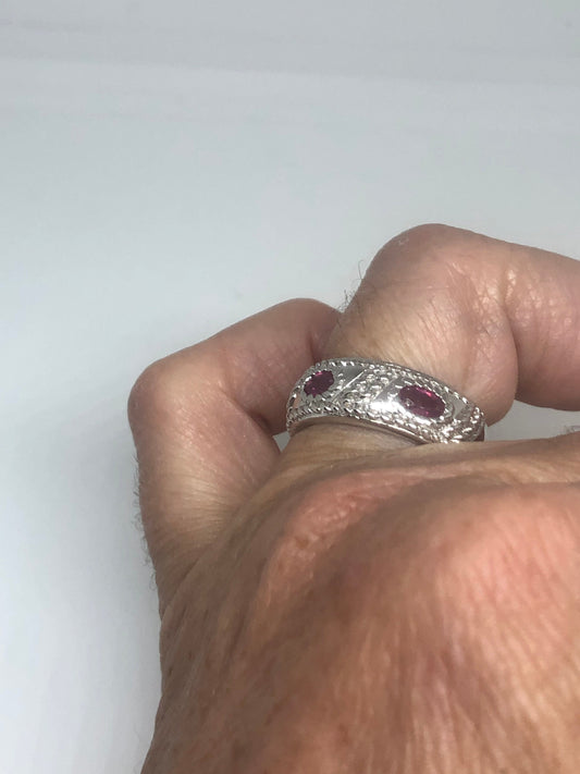 Vintage Pink Ruby 925 Sterling Silver Band Ring