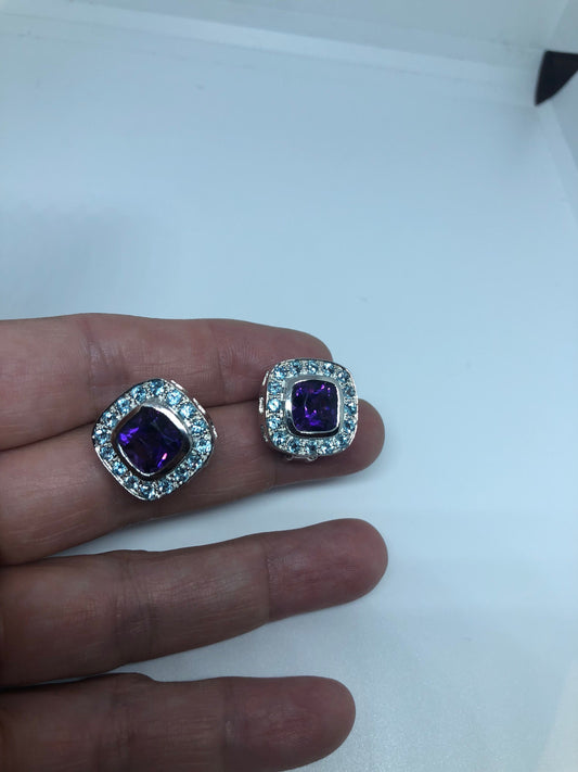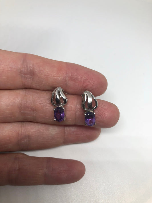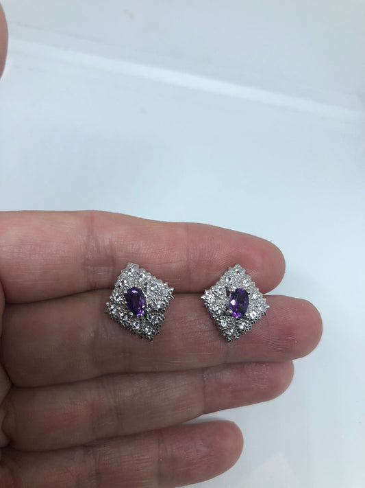Vintage Amethyst Earrings 925 Sterling Silver Purple Stud Button