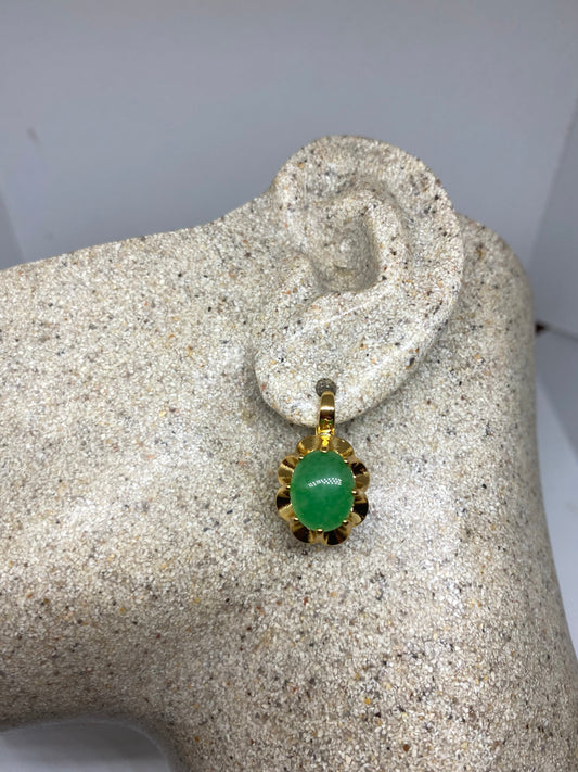 Vintage Fun Green Jade Gemstone Golden Bronze Earrings