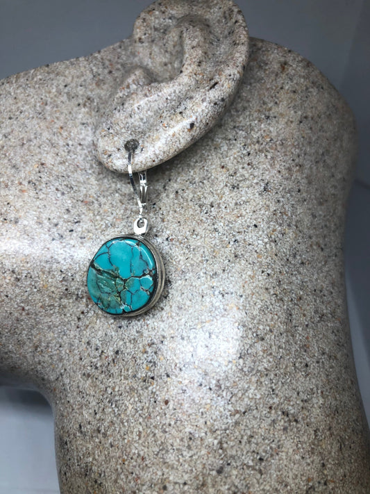Vintage Sterling Silver Blue Turquoise LeverBack Earrings