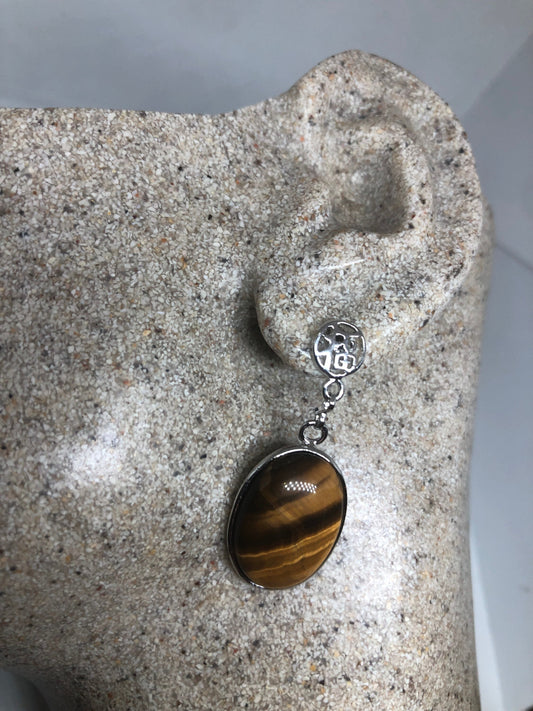 Antique Vintage Golden Tigers Eye Silver Dangle Earrings