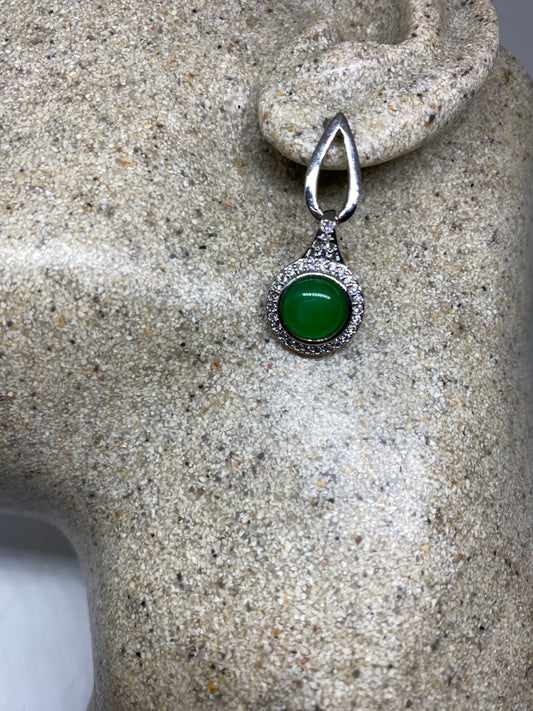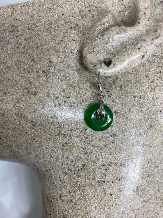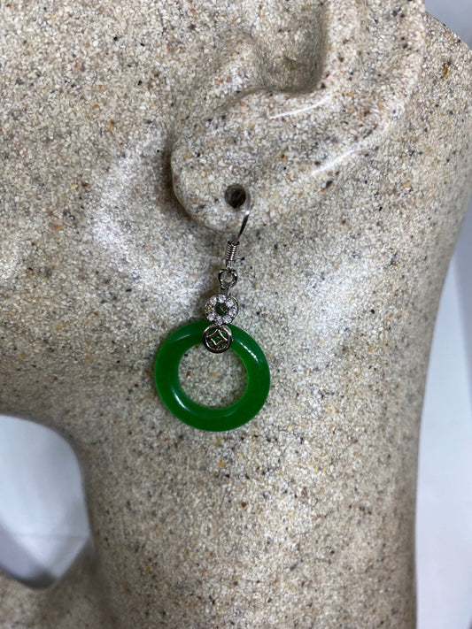Vintage Fun Green Jade Gemstone Rhodium Bronze Earrings