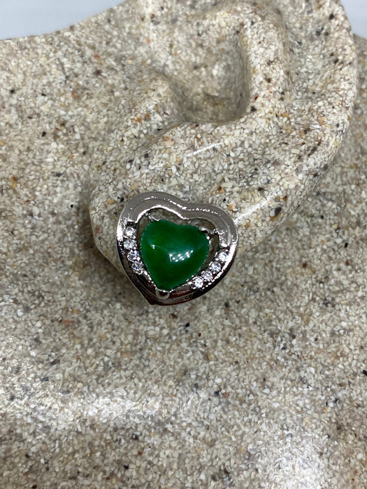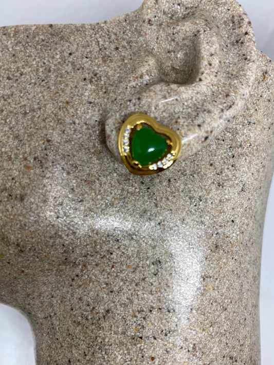 Vintage Fun Green Jade Gemstone Silver Bronze Stud Earrings