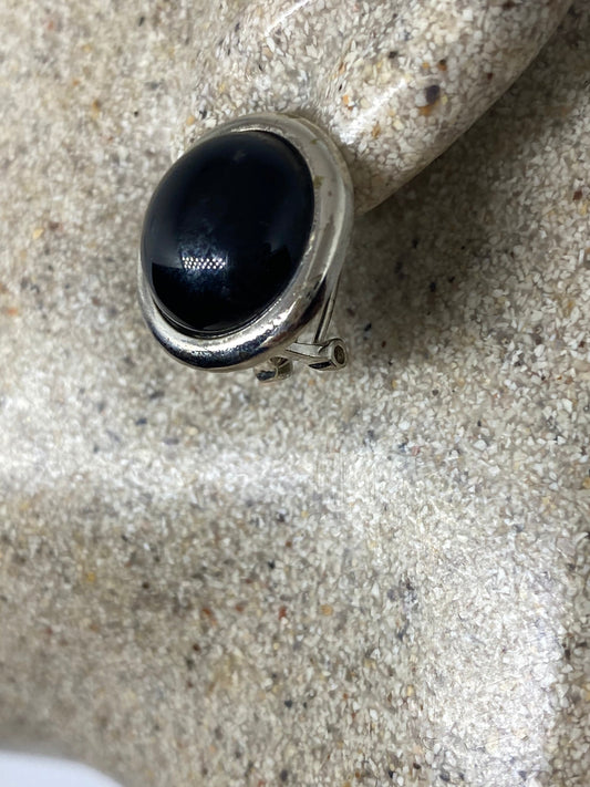 Vintage Black Earring Onyx 925 Sterling Silver Deco Dangle Chandelier