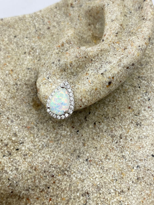Vintage Opal Earrings 925 Sterling Silver Stud Button