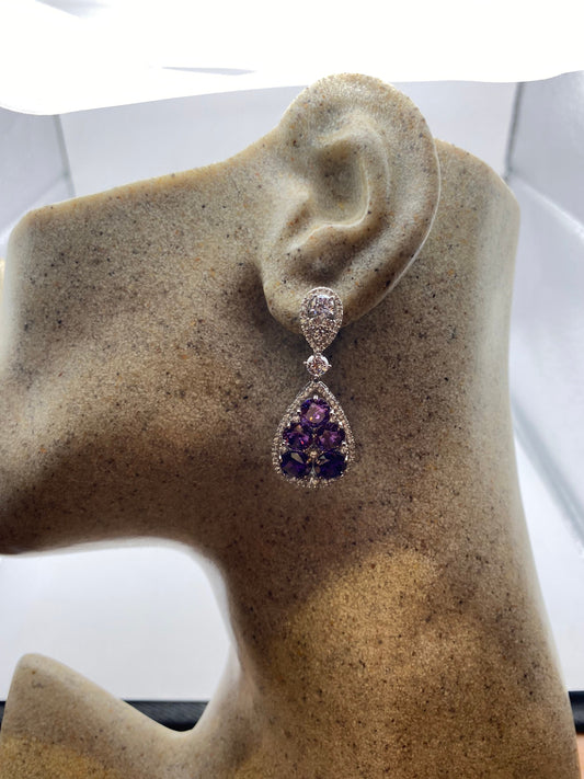 Vintage Amethyst Earrings 925 Sterling Silver Deco Chandelier Drop