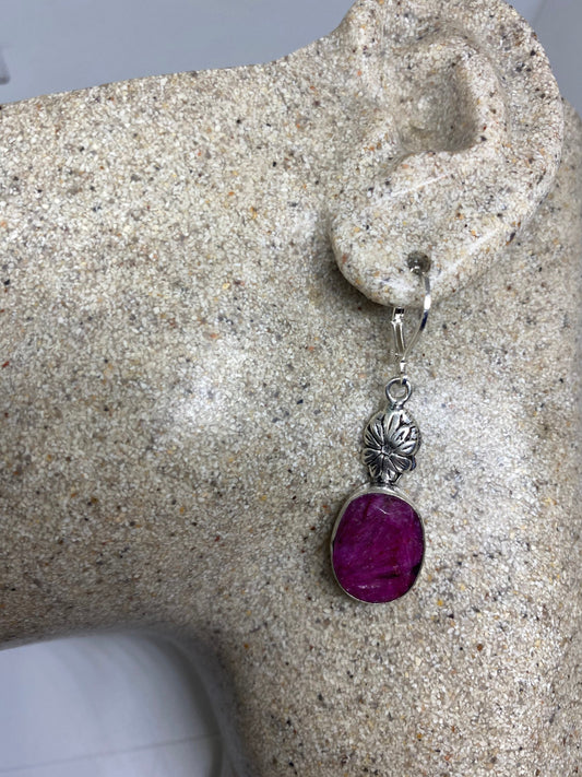 Vintage Raw Ruby LeverBack 925 Sterling Silver Earrings