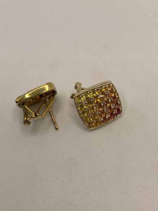 Vintage 925 Sterling Silver Bohemian Garnet Citrine Earrings