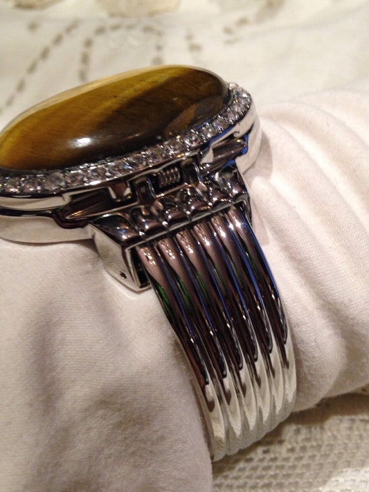 Vintage Tigers Eye Gemstone bangle Bracelet watch