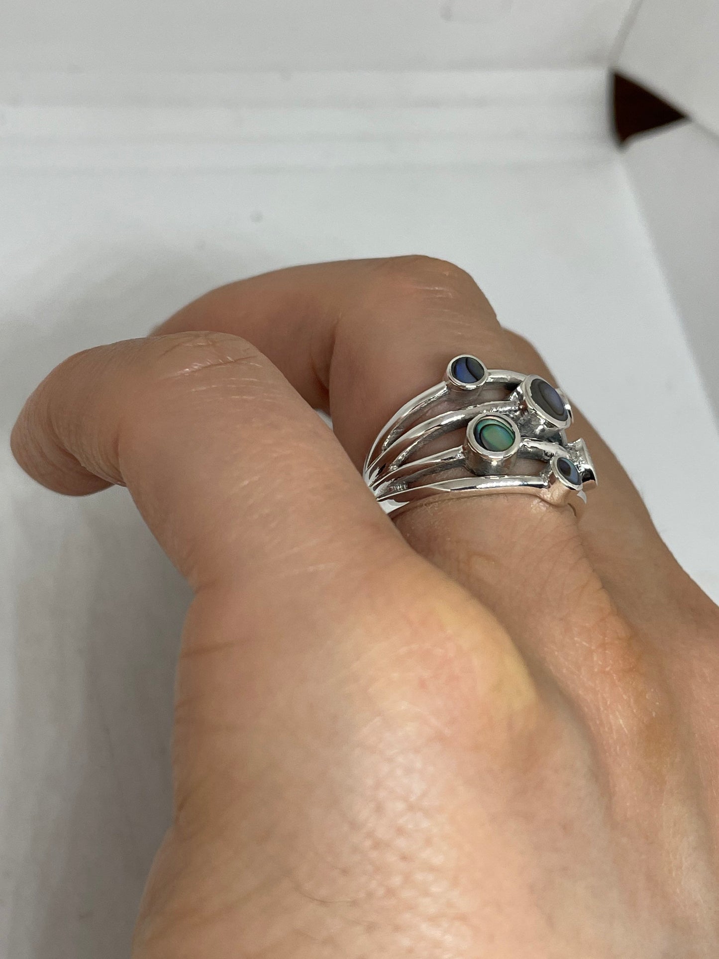 Antique Abalone Filigree Sterling Silver Ring