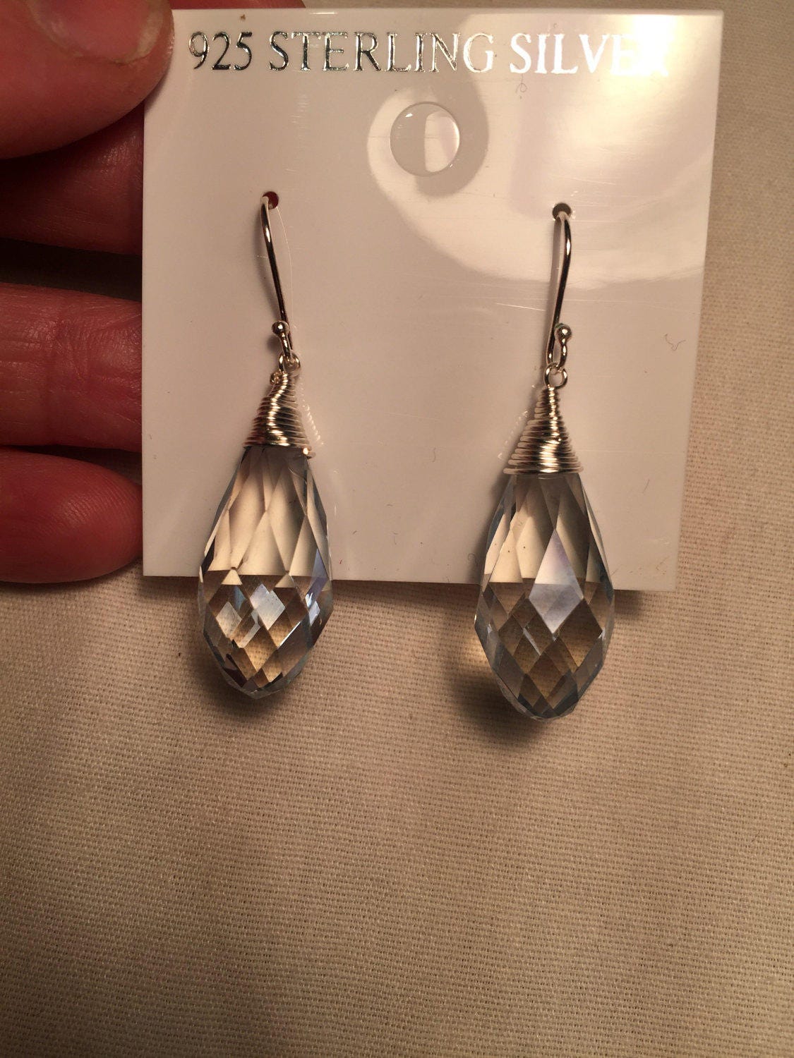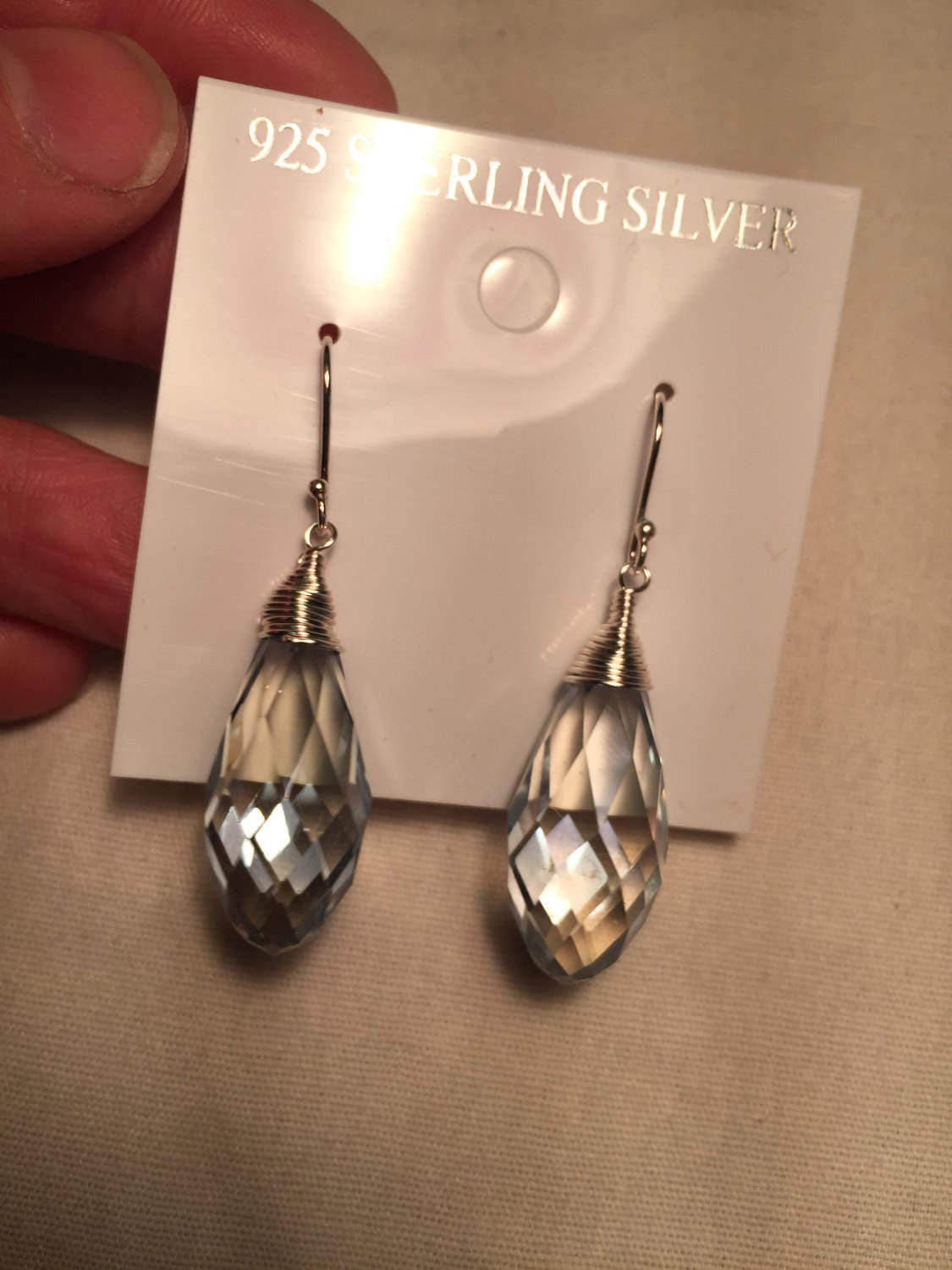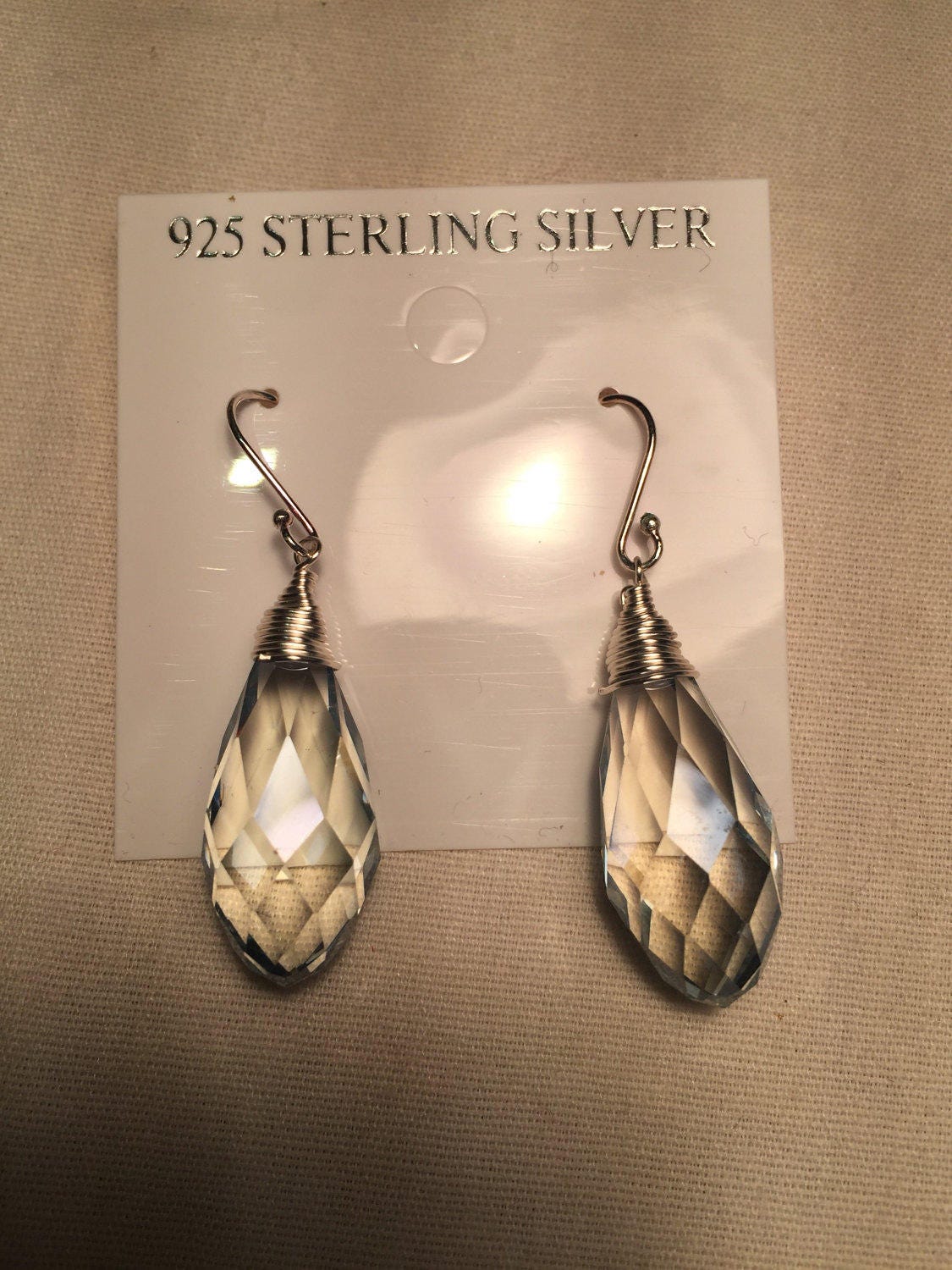 Antique Crystal Charm Gemstone Sterling Silver Dangle Earrings