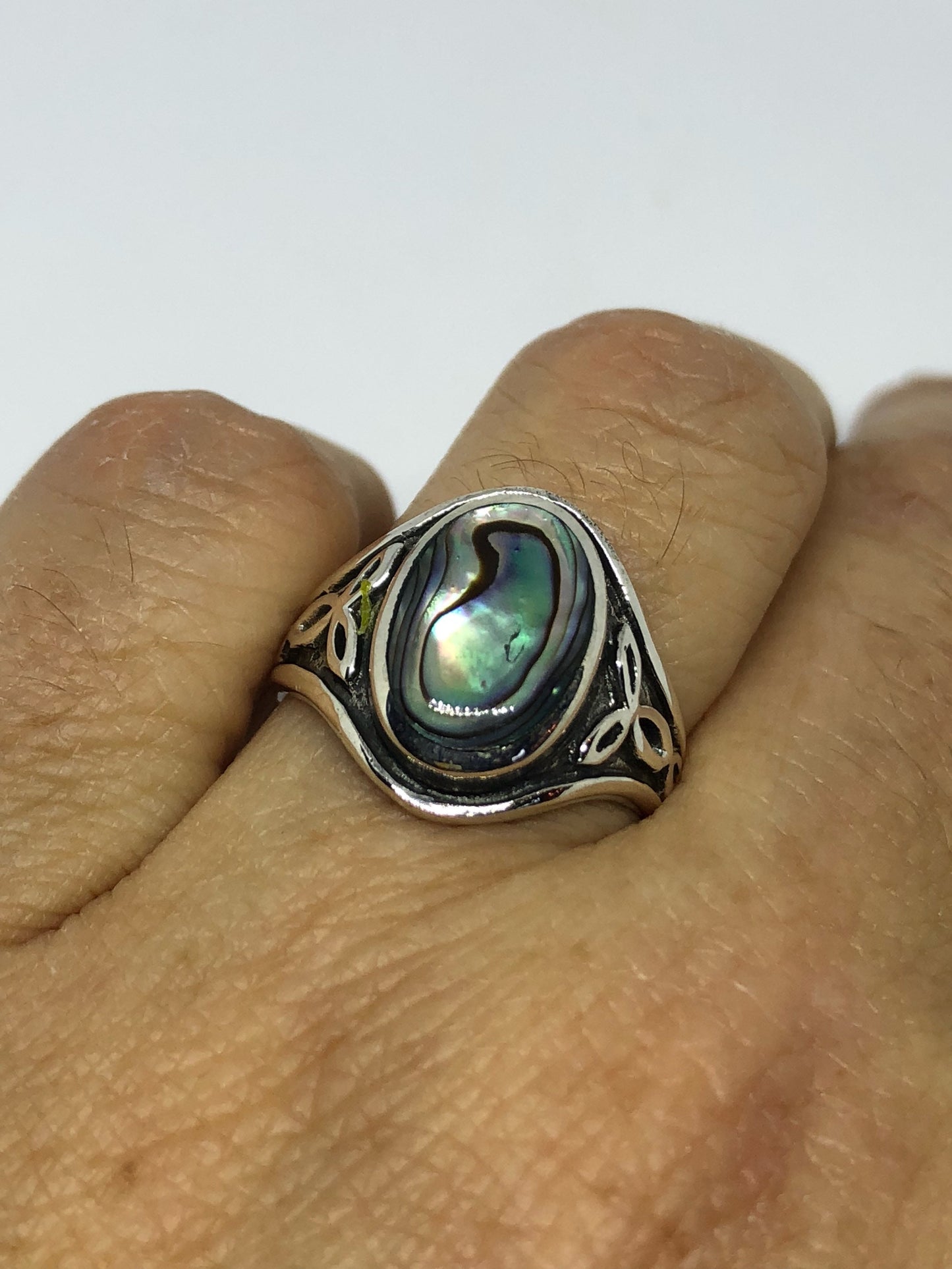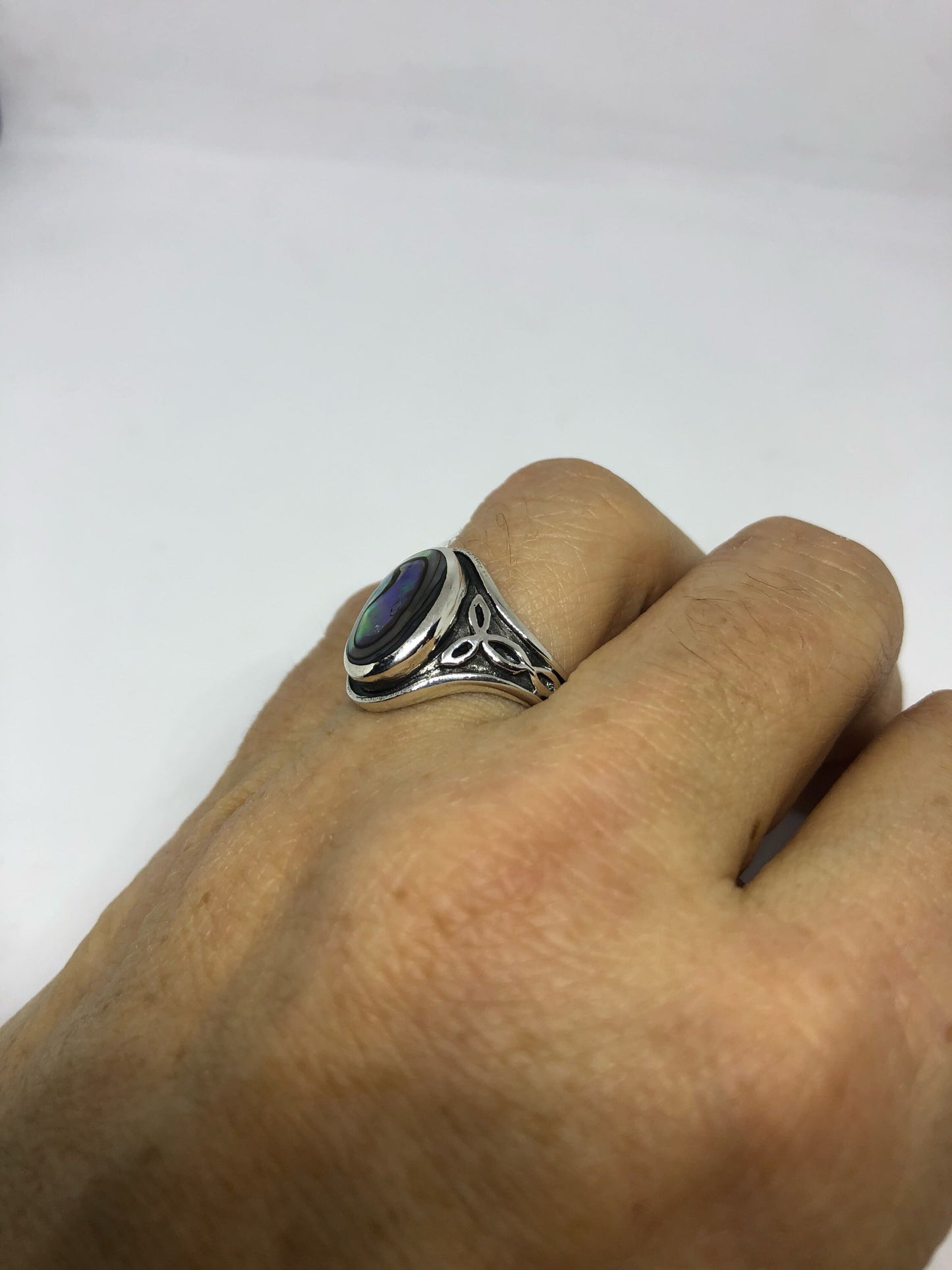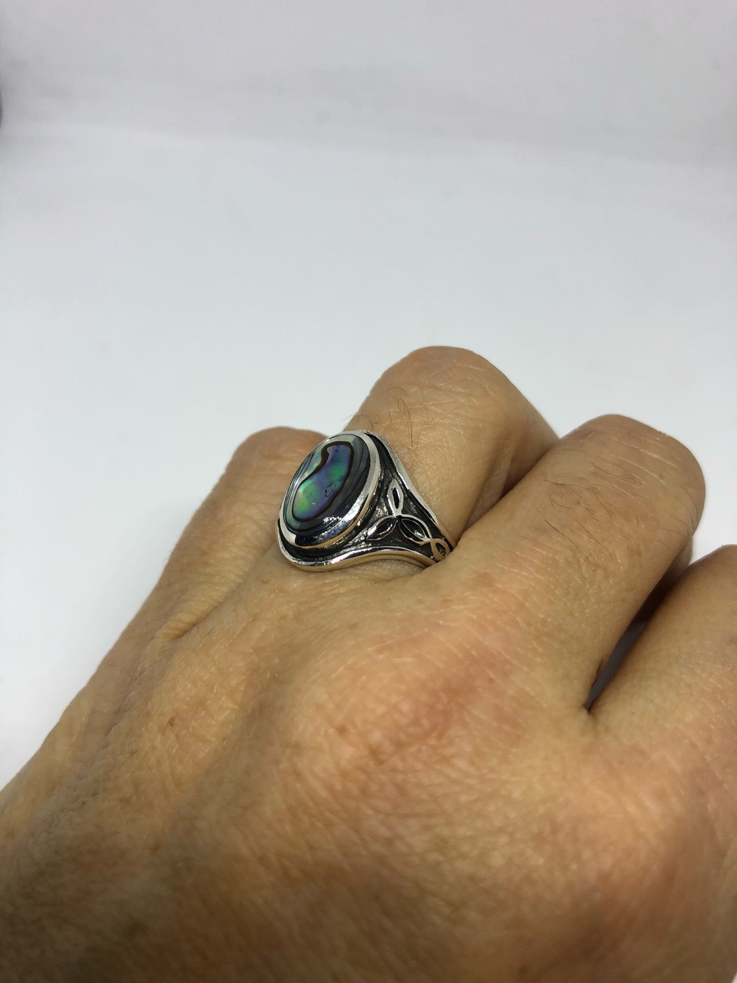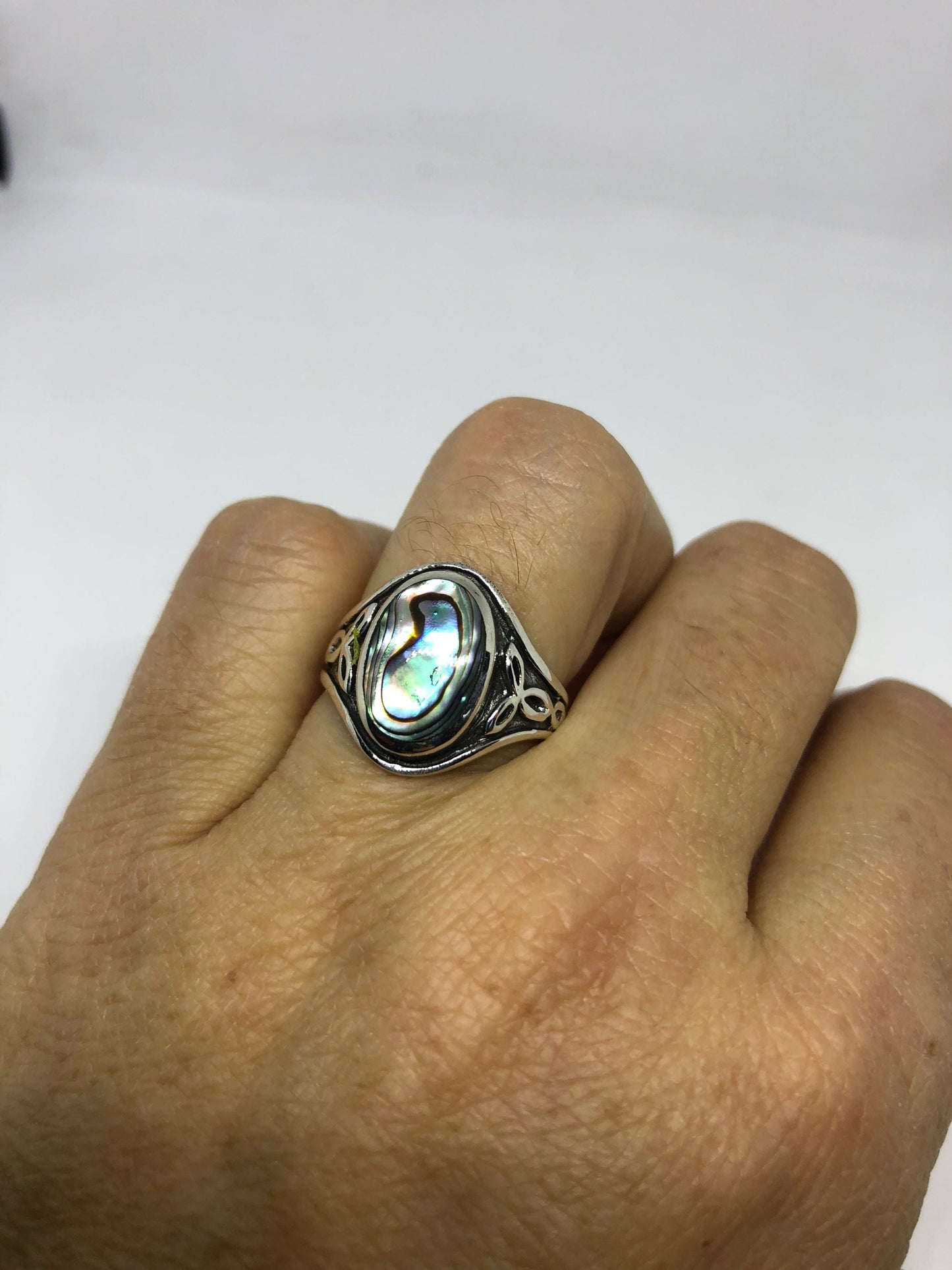 Antique Green Abalone Celtic Knot Filigree Sterling Silver Ring