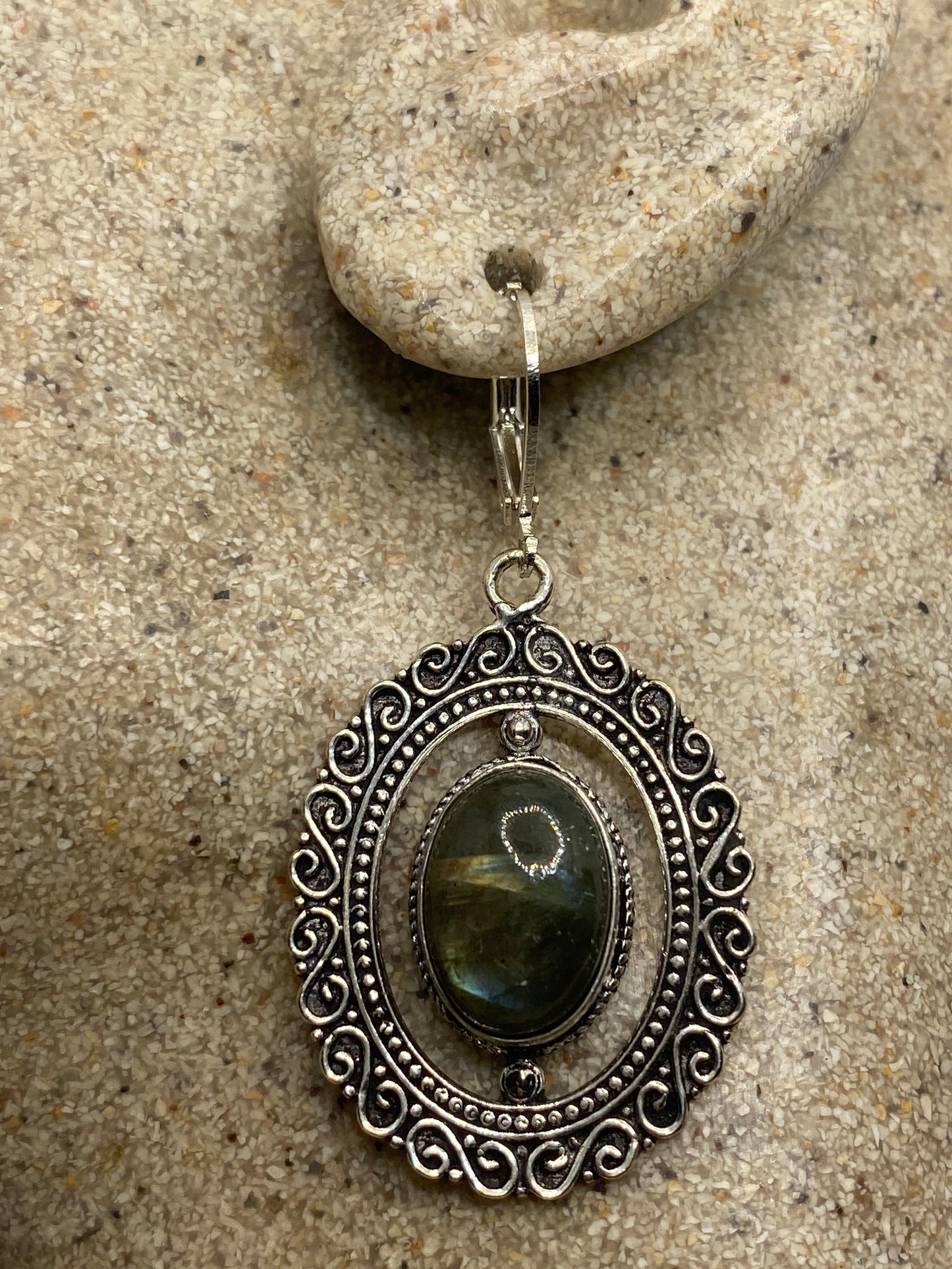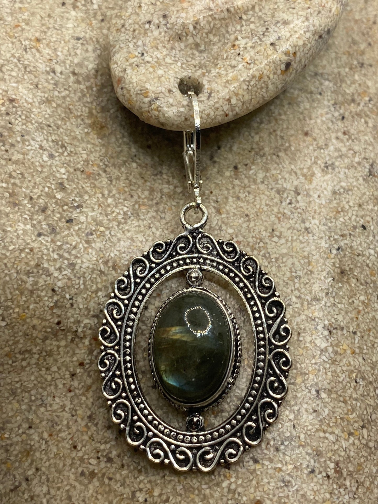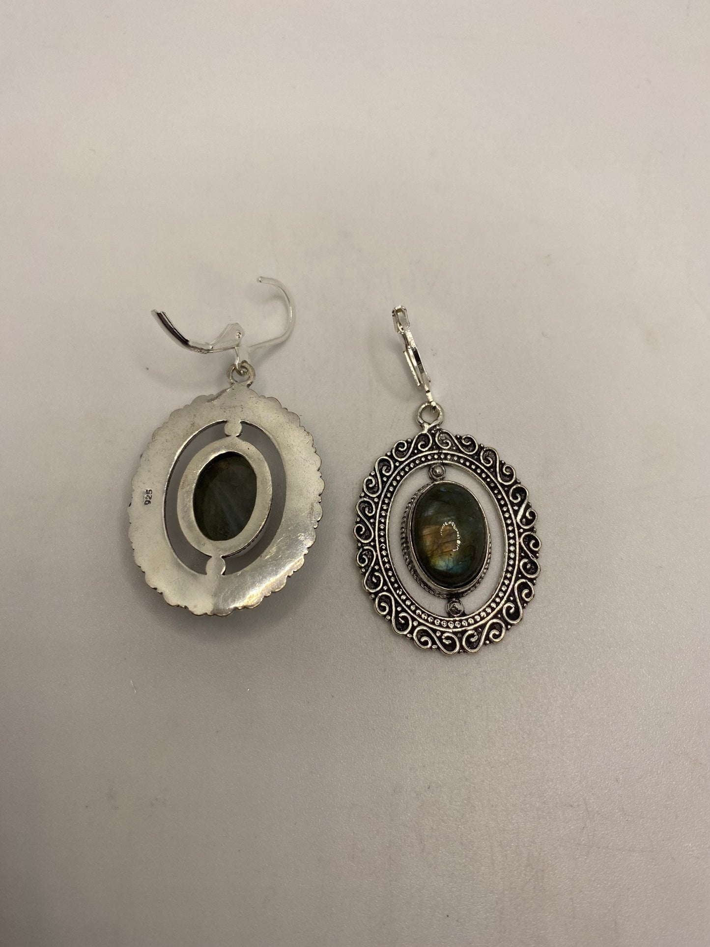 Antique Vintage Green Labradorite Silver Dangle Earrings