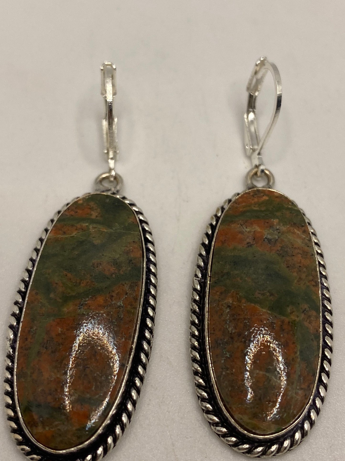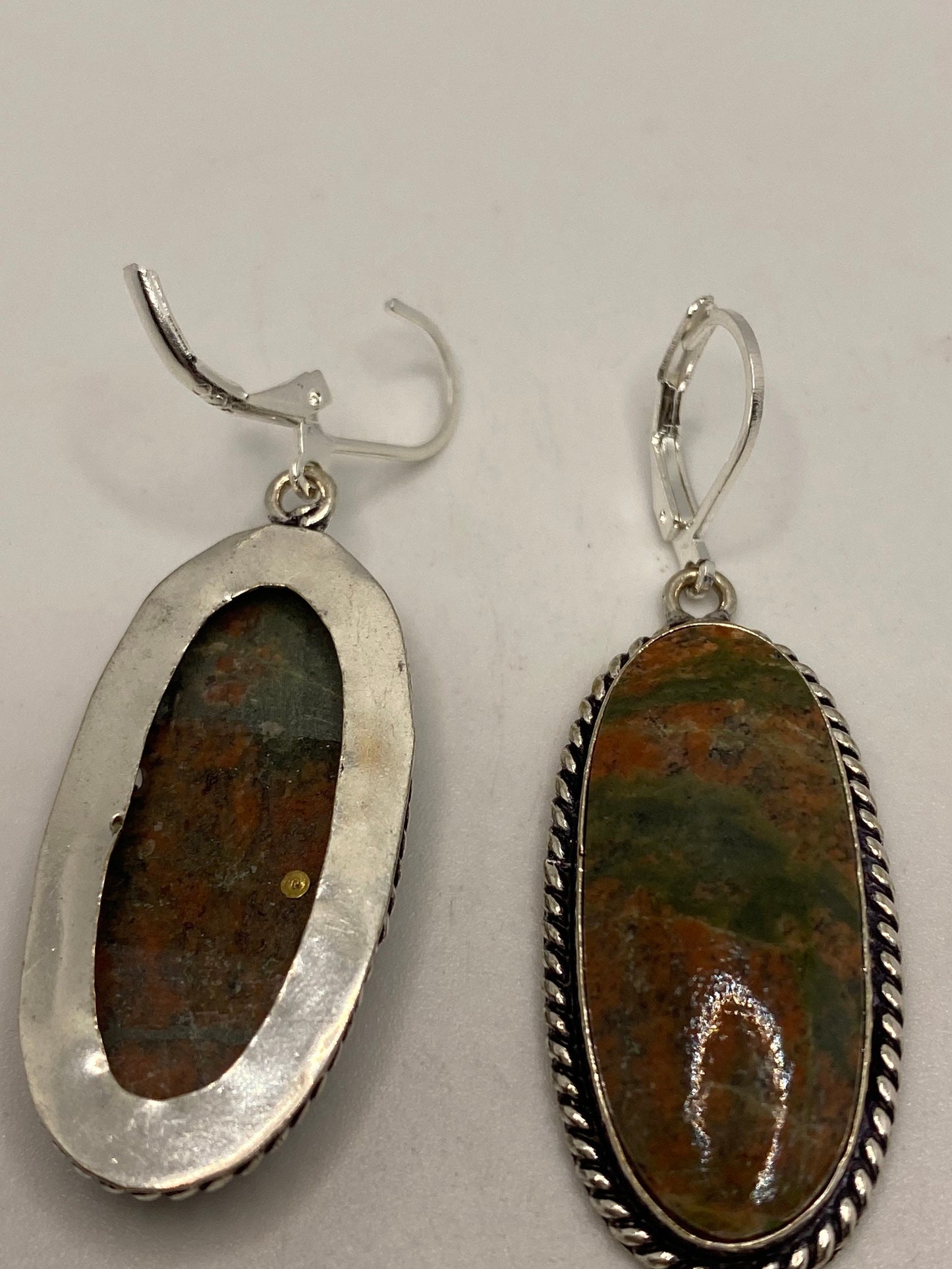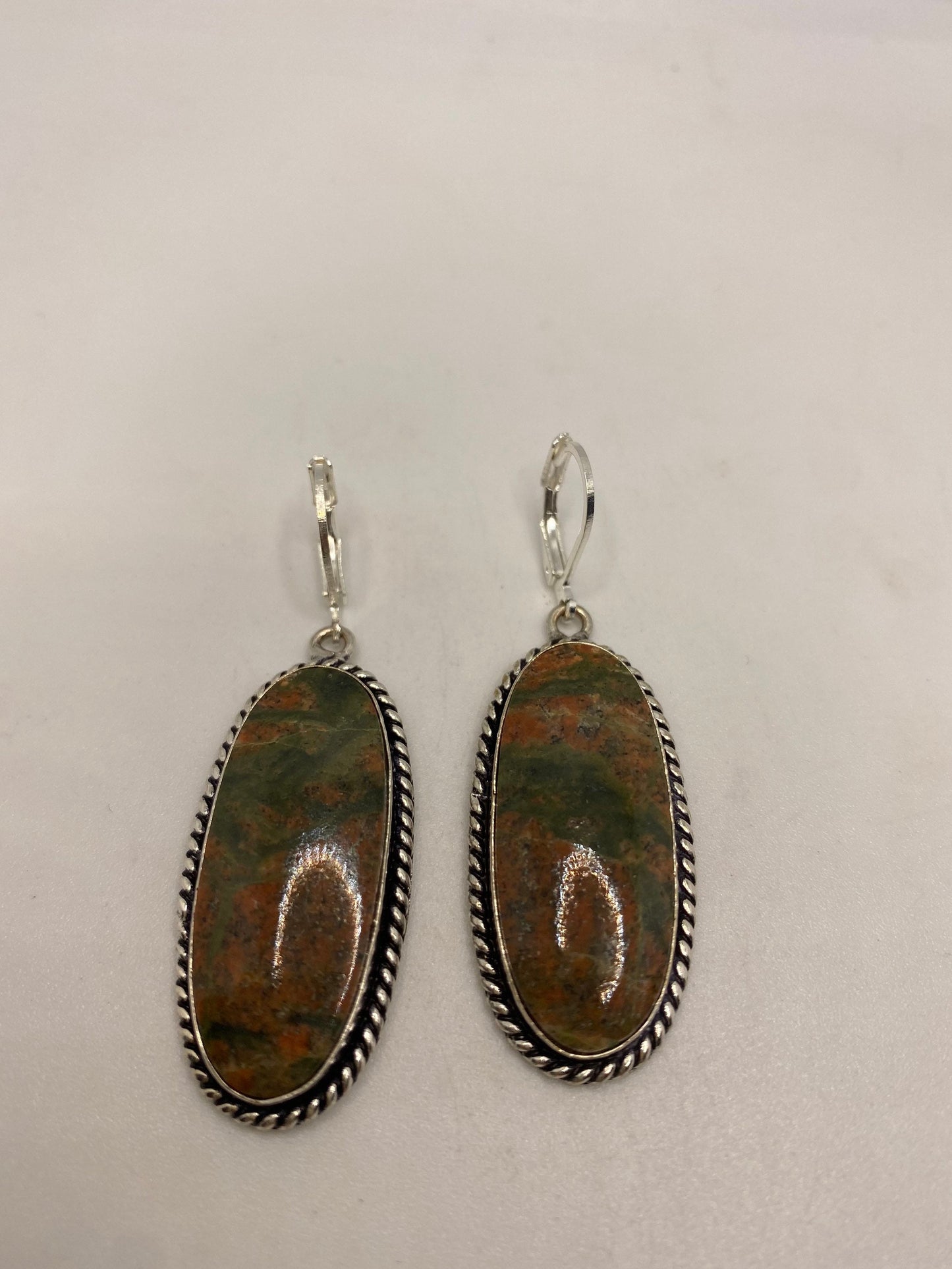 Antique Vintage Green Unichite Silver Dangle Earrings