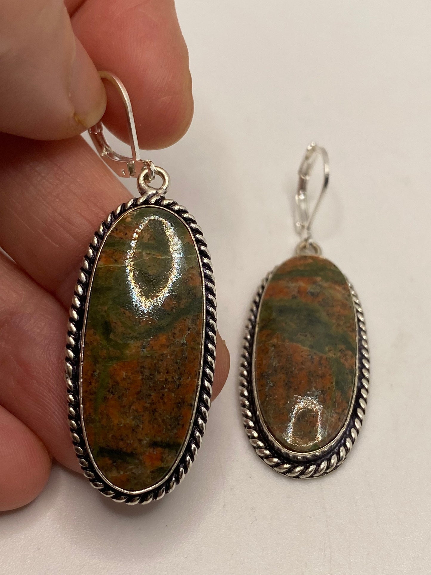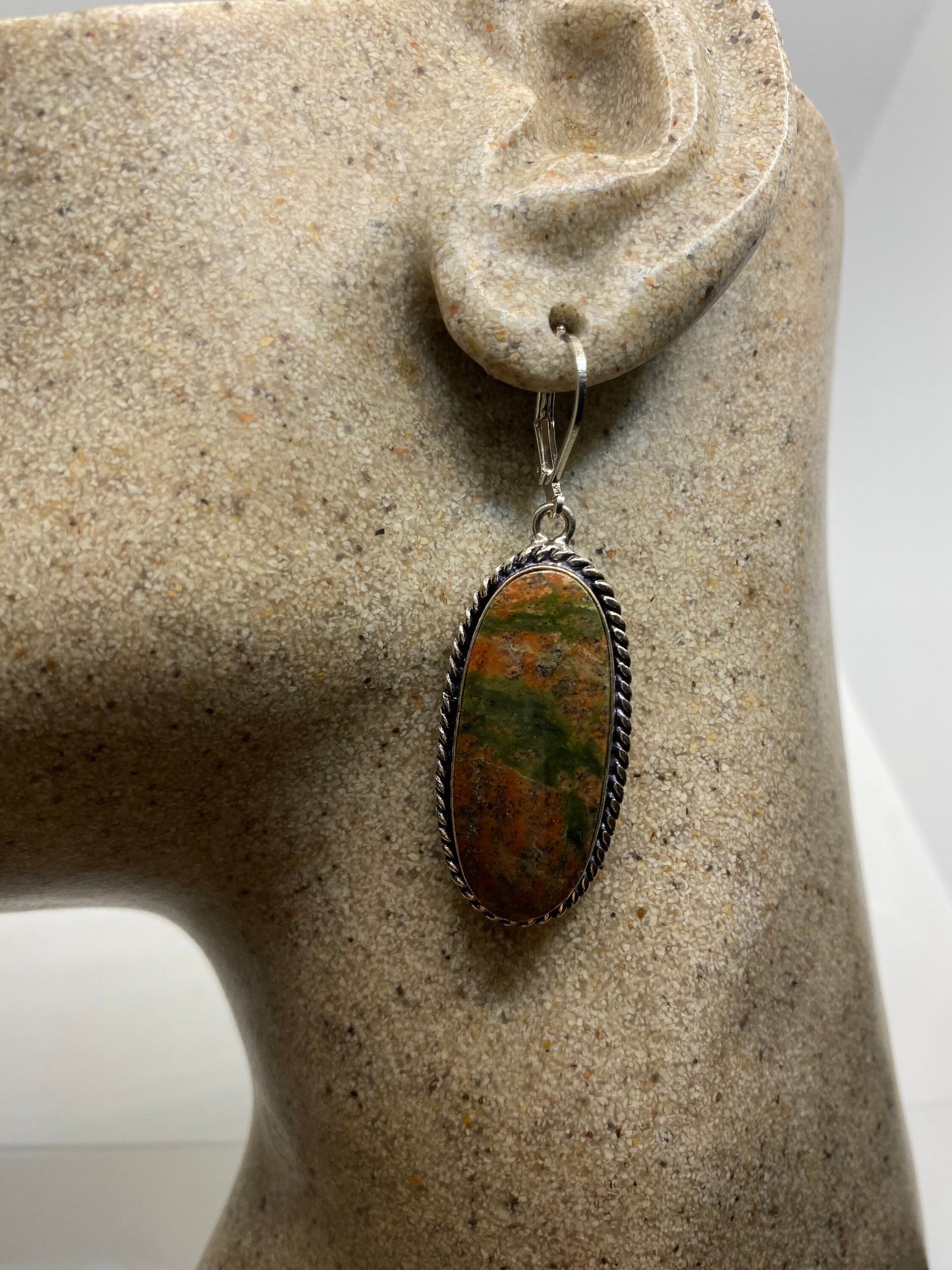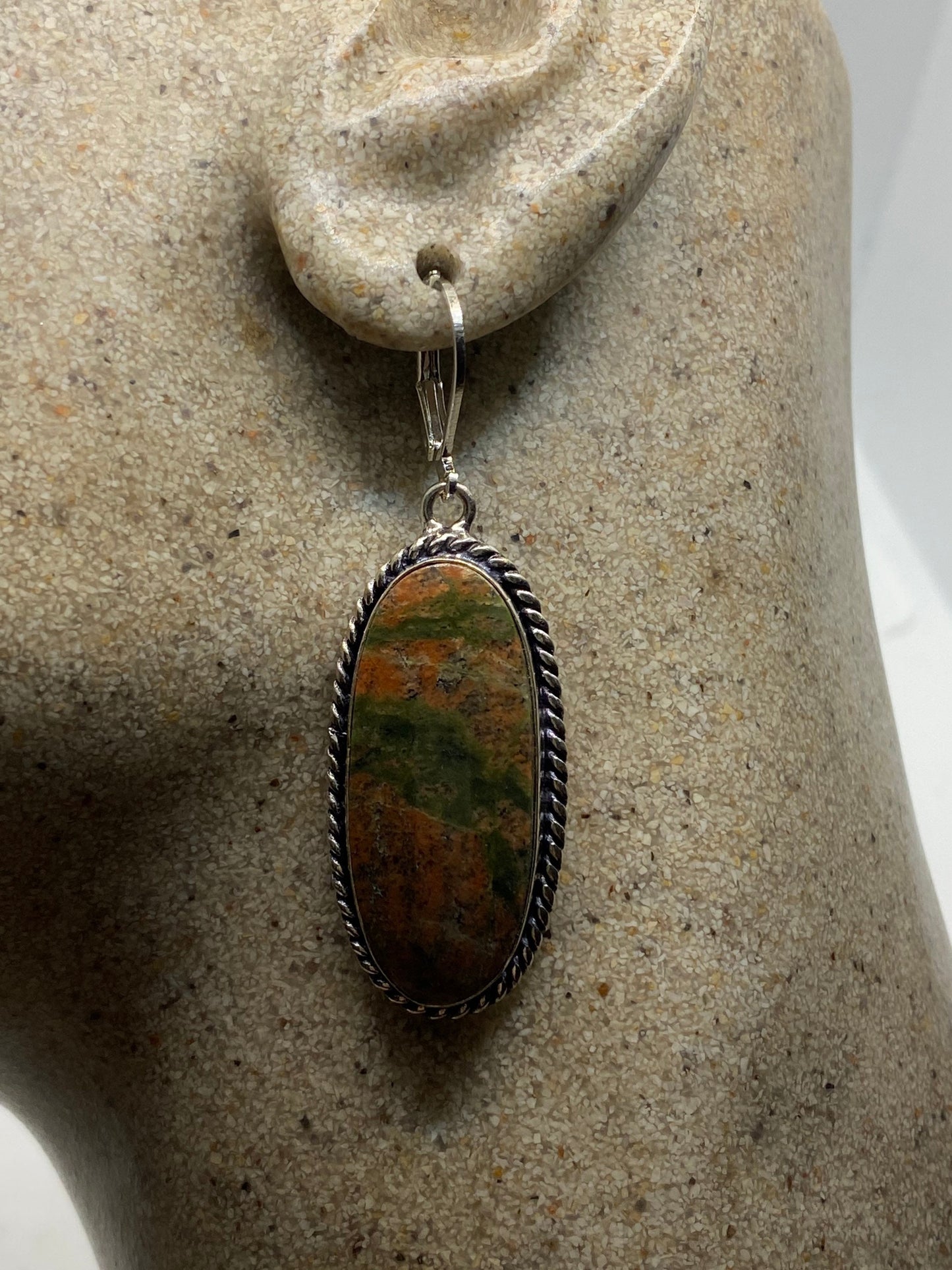 Antique Vintage Green Unichite Silver Dangle Earrings