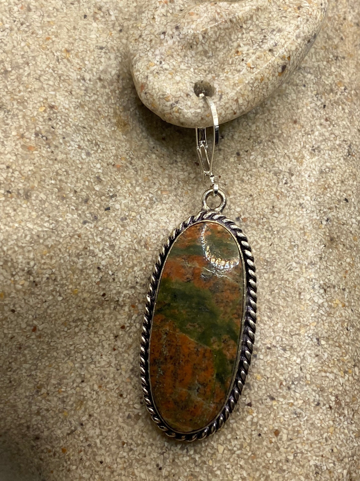 Antique vintage green unicite silver dangle earrings