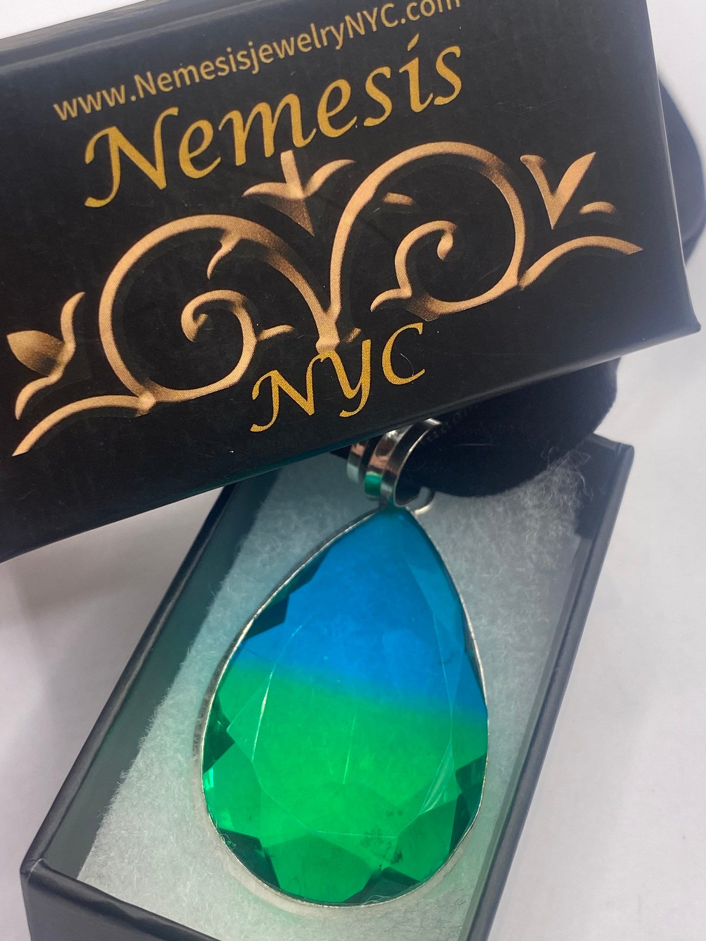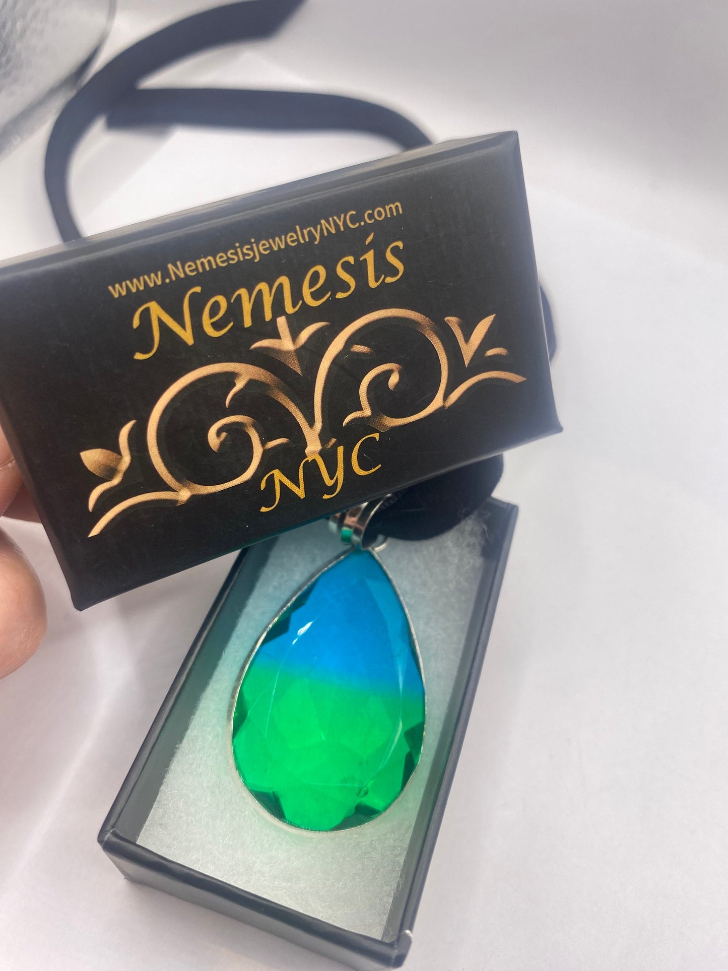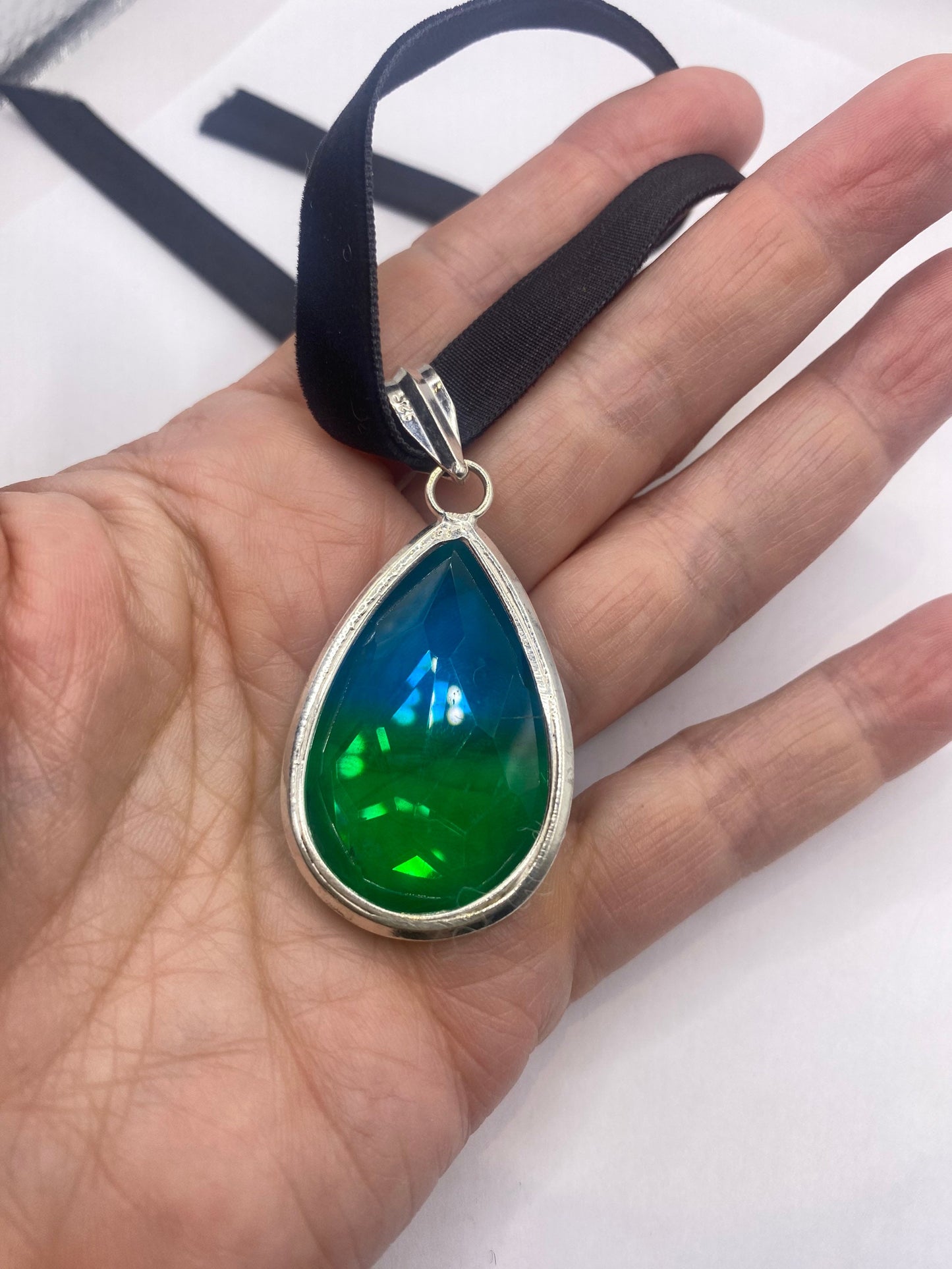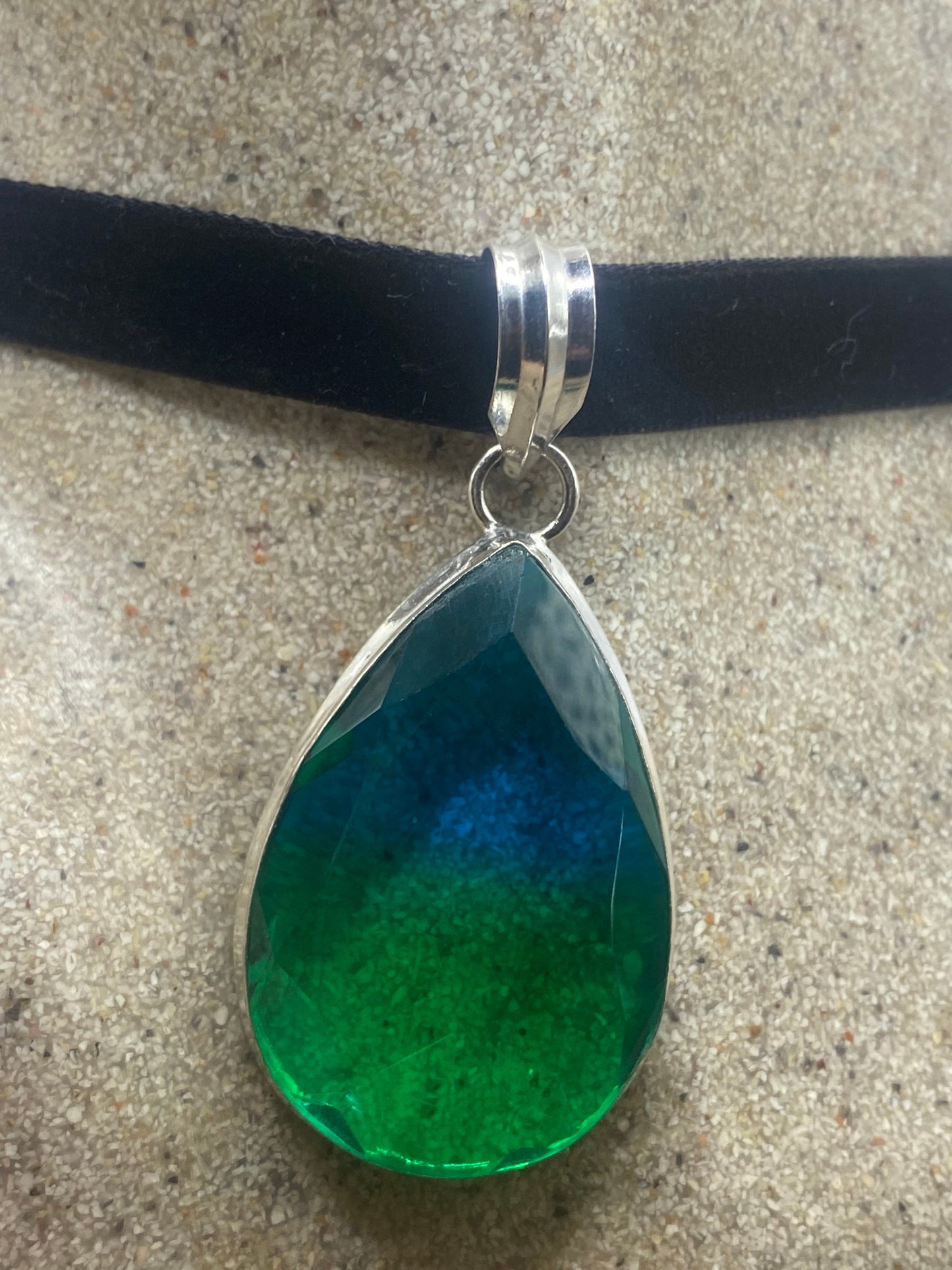Blue Green Handmade Gothic Silver Finished Genuine Facetted Antique Volcanic Glass Choker Necklace