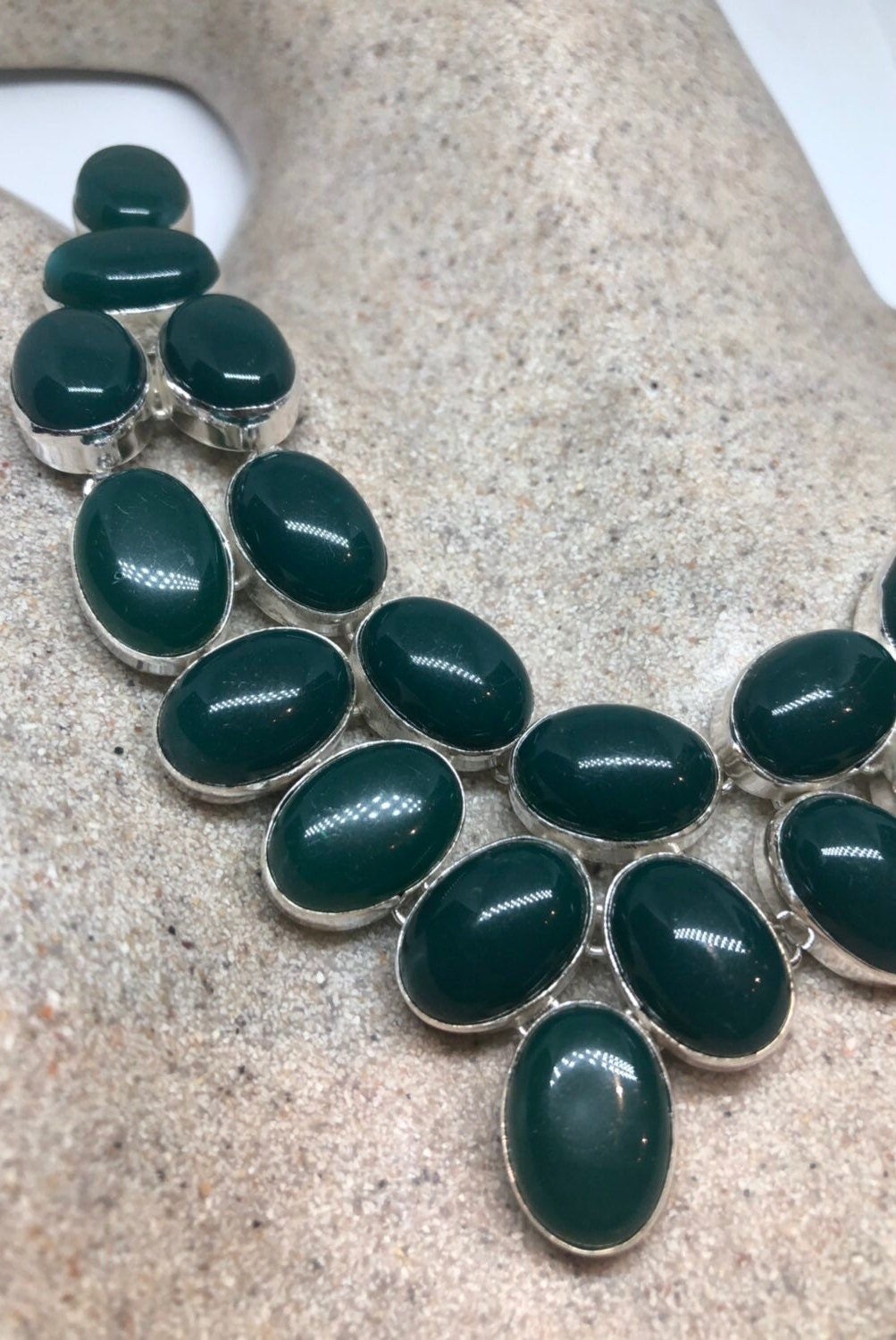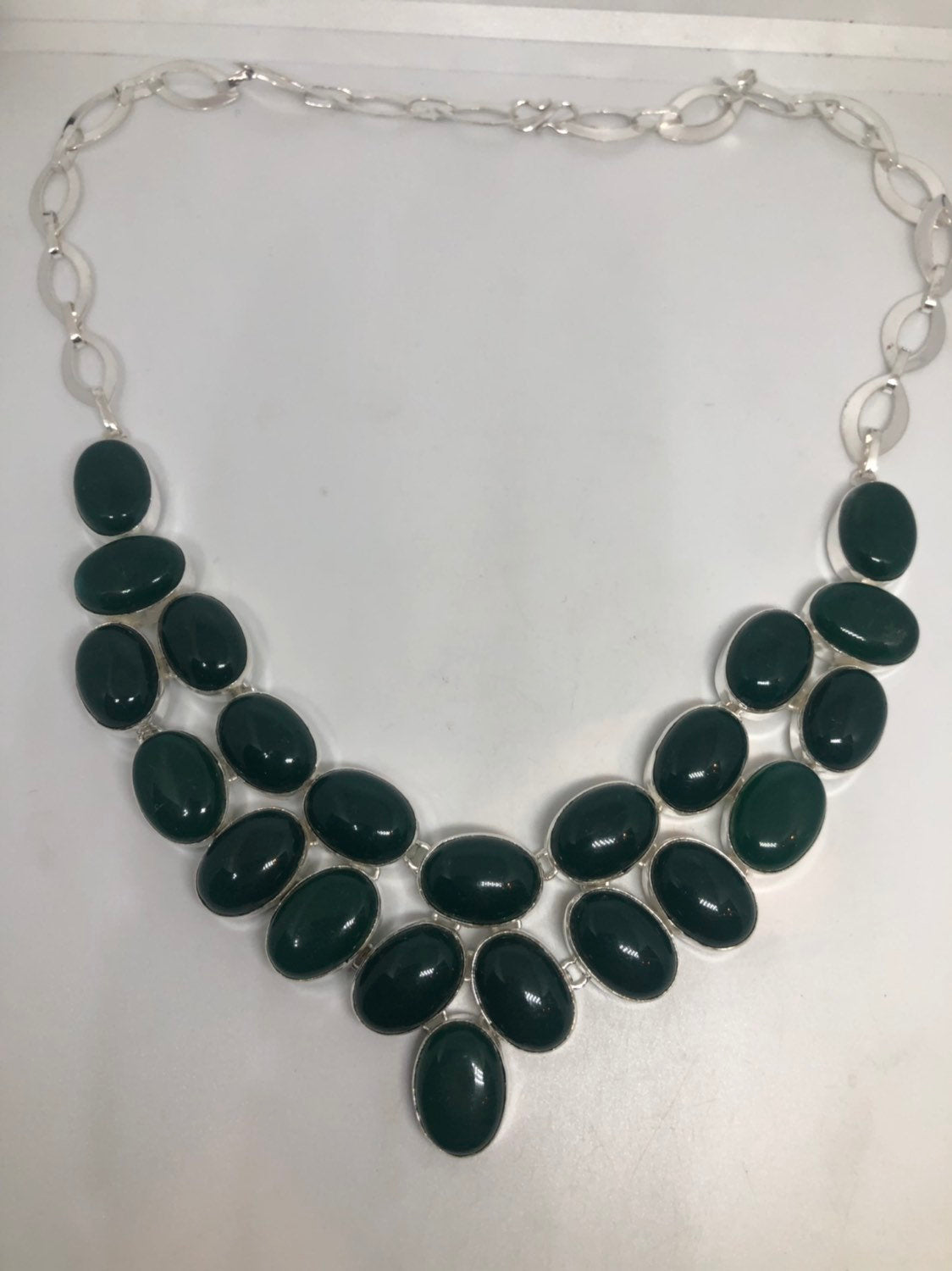 Green Handmade Gothic Styled Silver Finished Genuine Green chrysoprase Jade collar bib Necklace