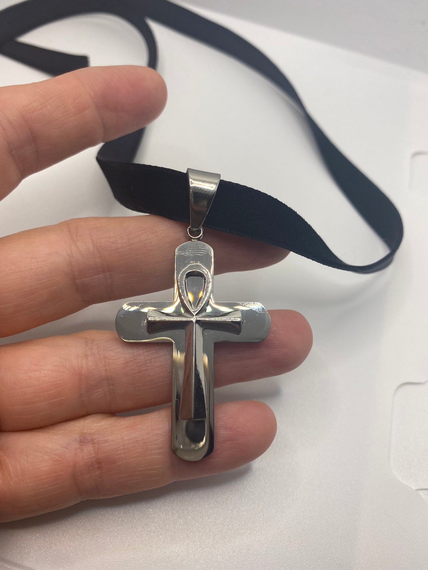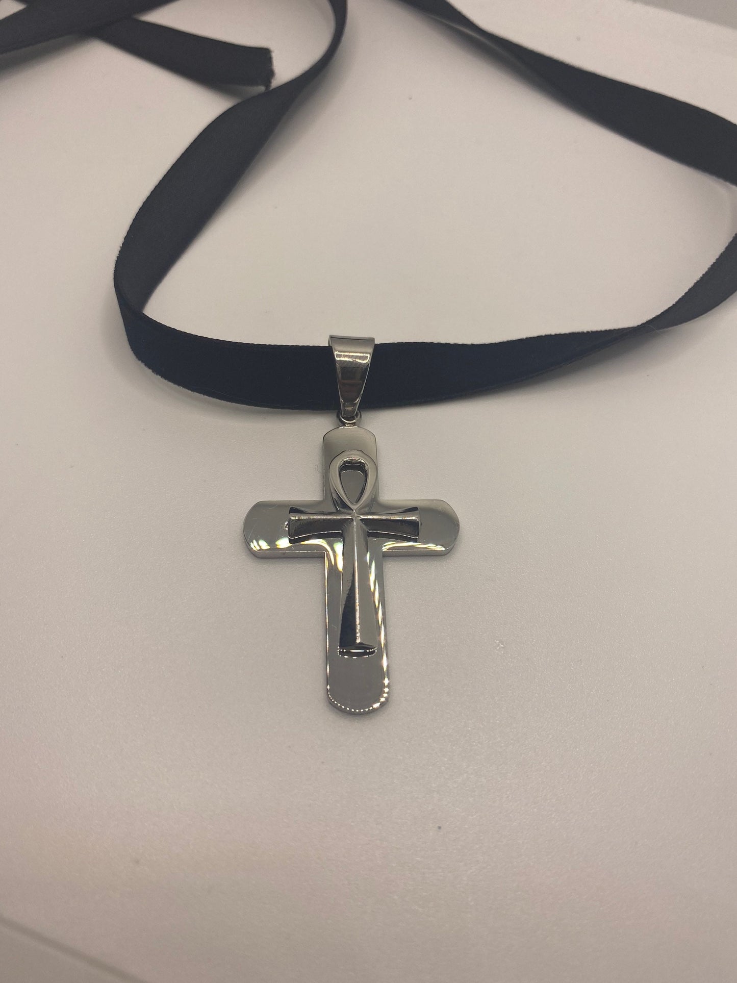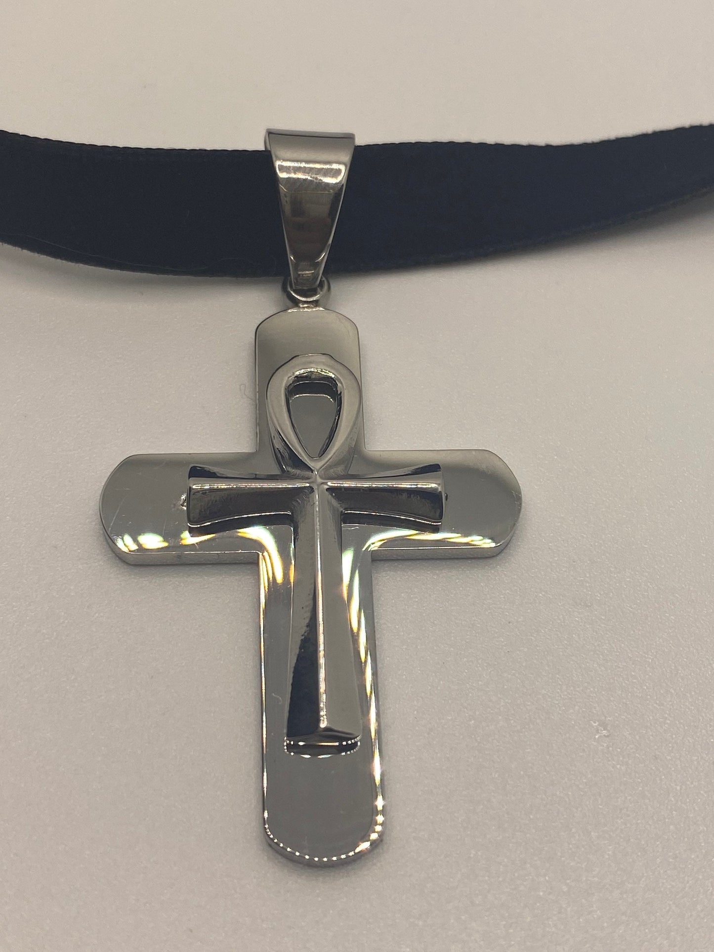 Silver Egyptian Ankh Pendant Choker