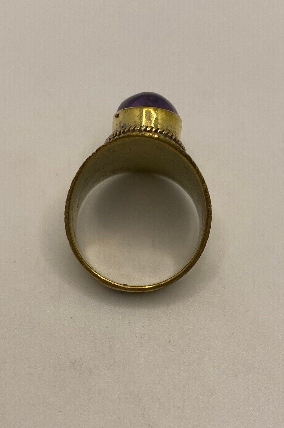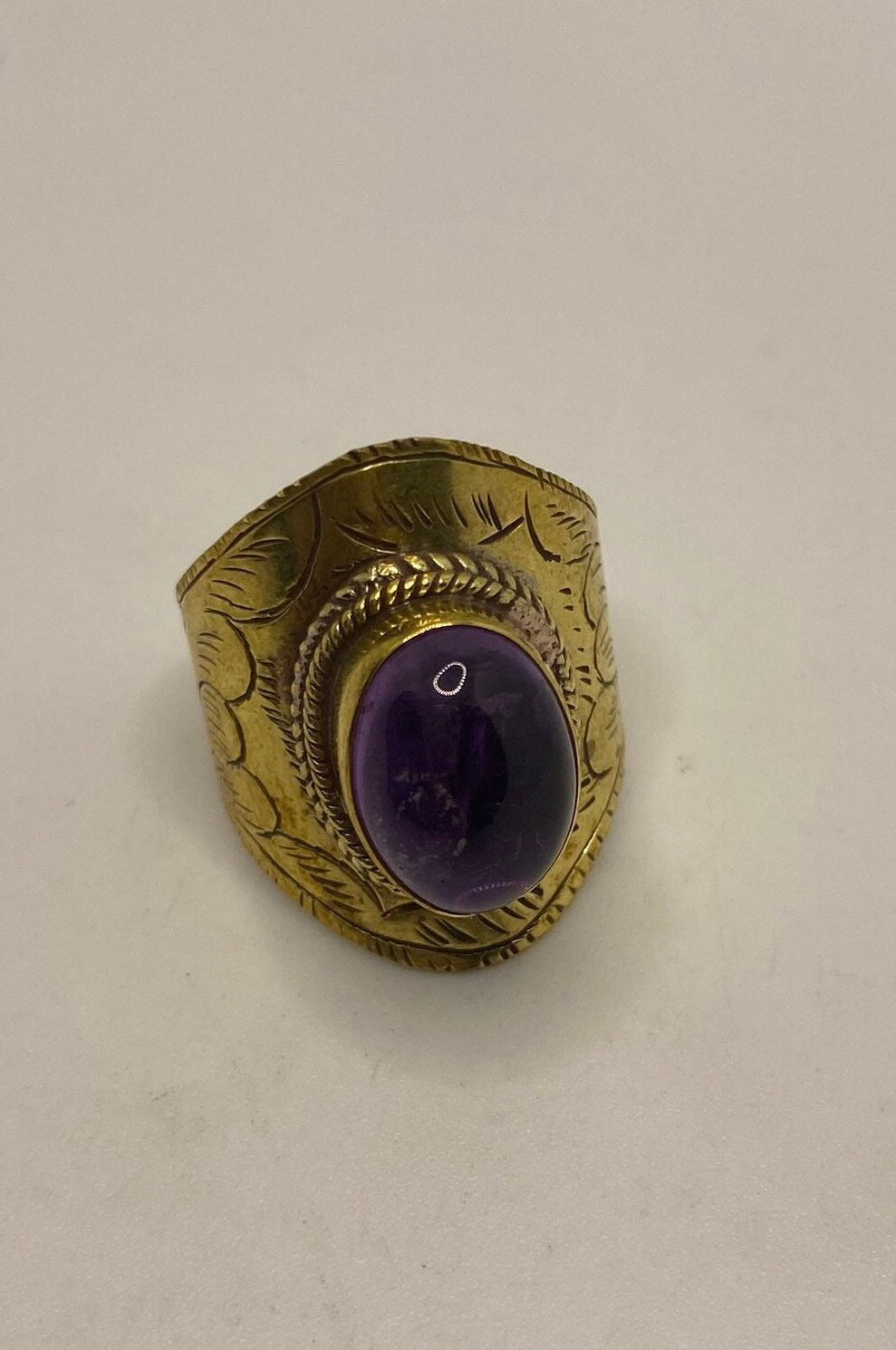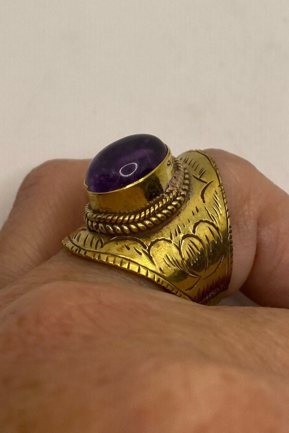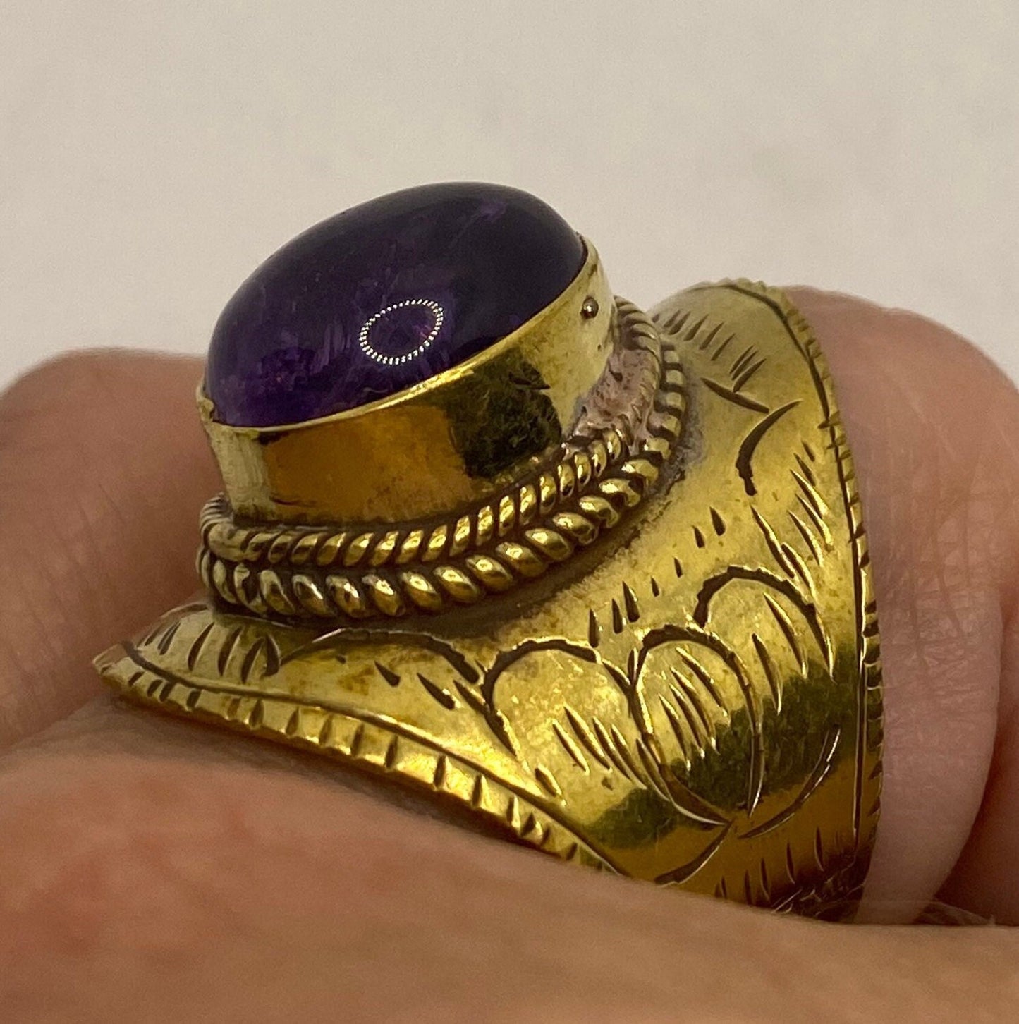 Lovely polished brass has the look of gold set with a huge amethyst deep color