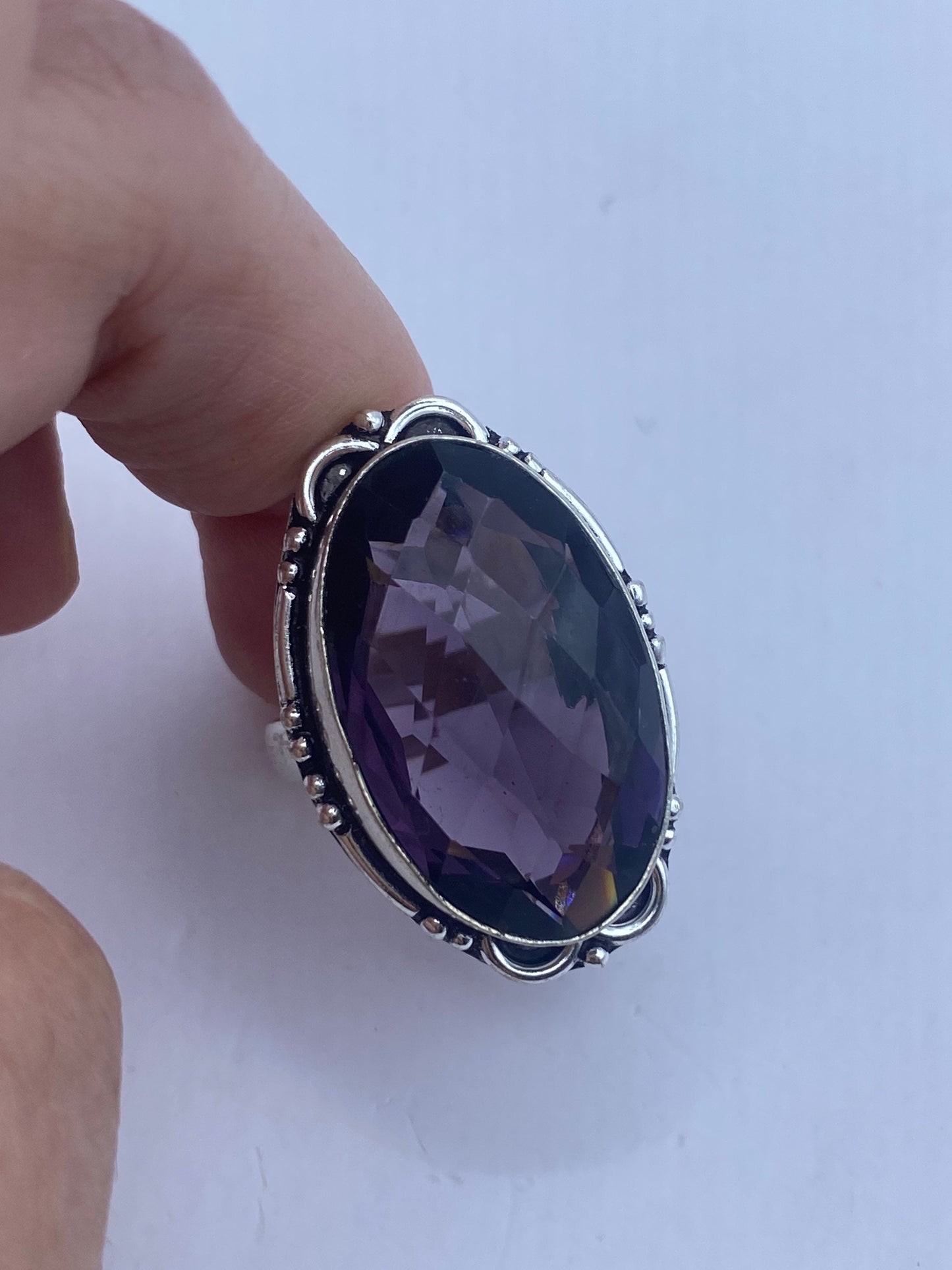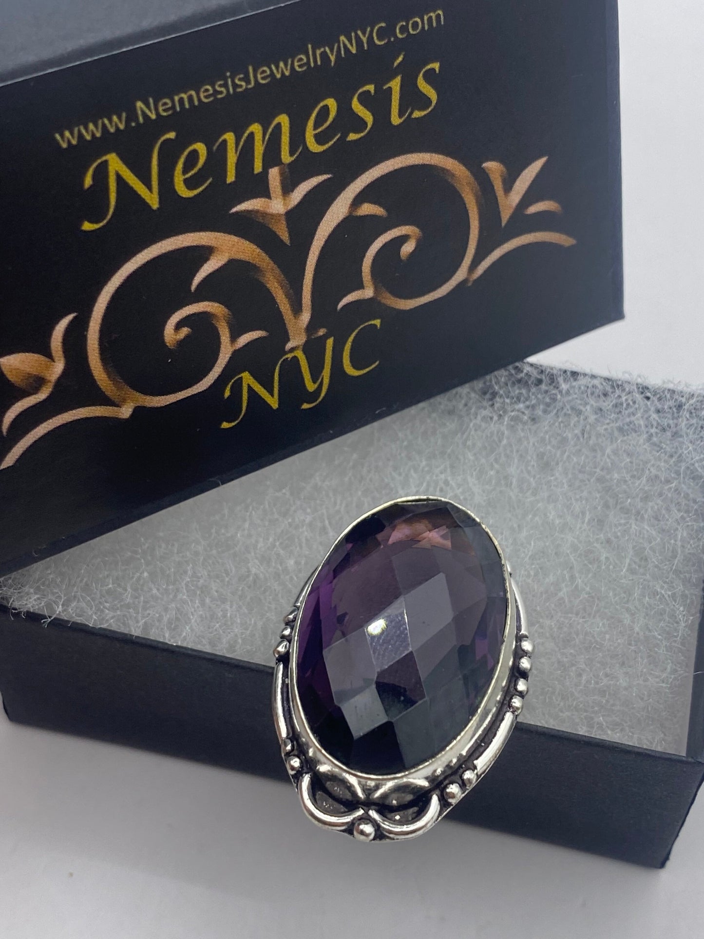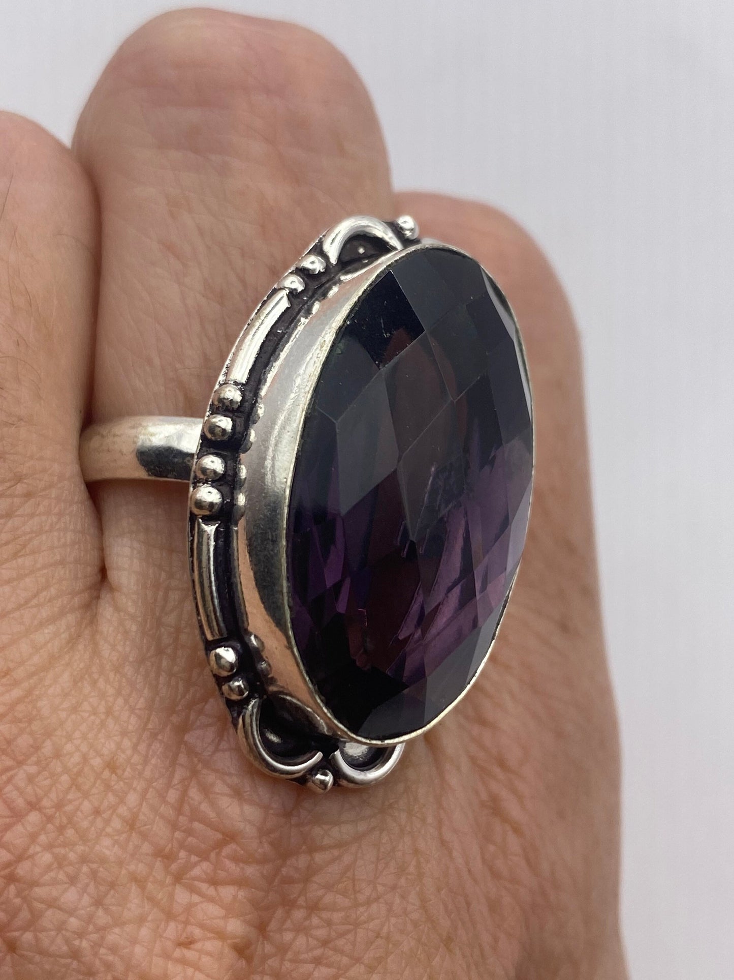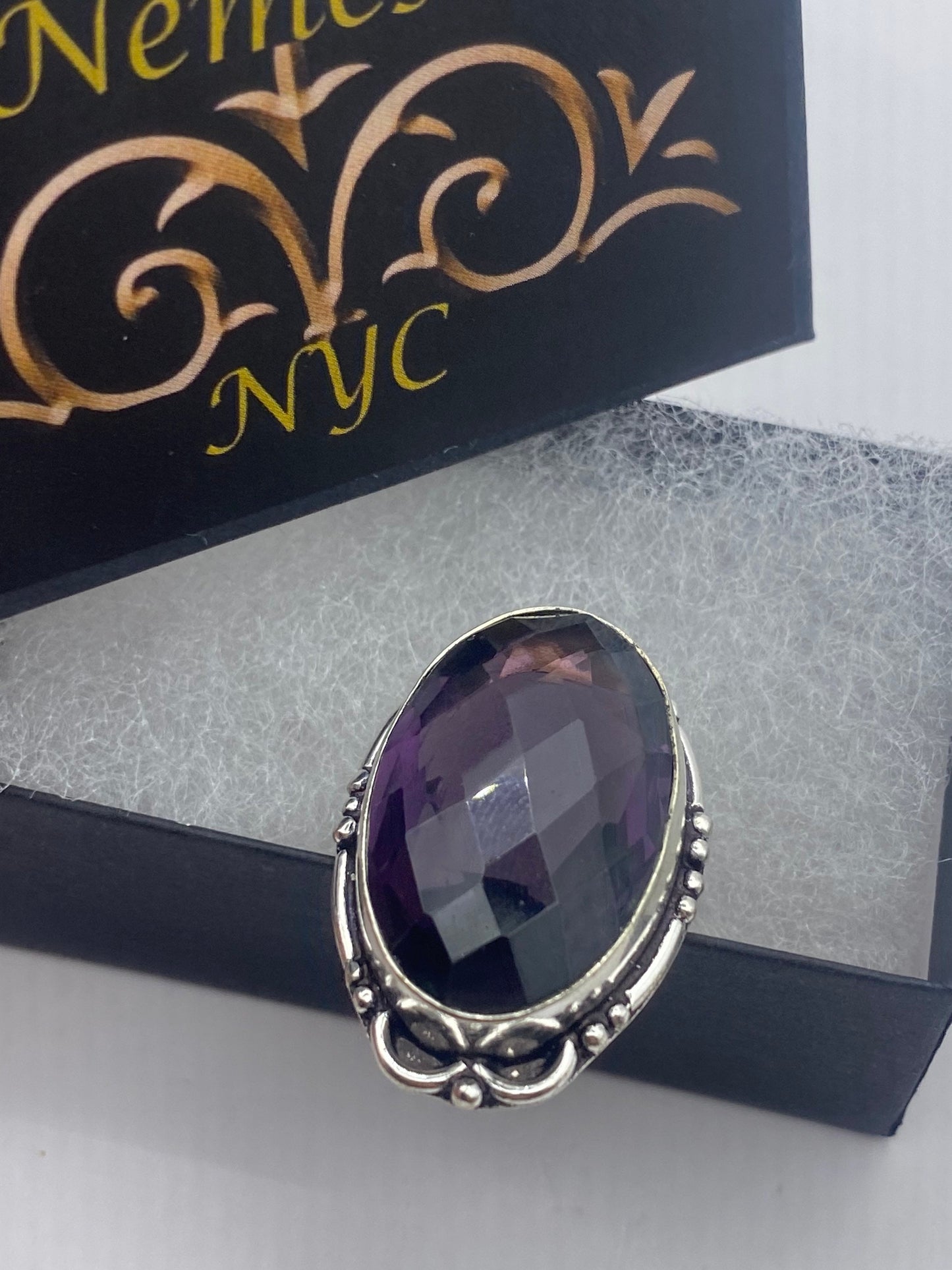 Vintage Amethyst Glass Ring Antique Statement Cocktail