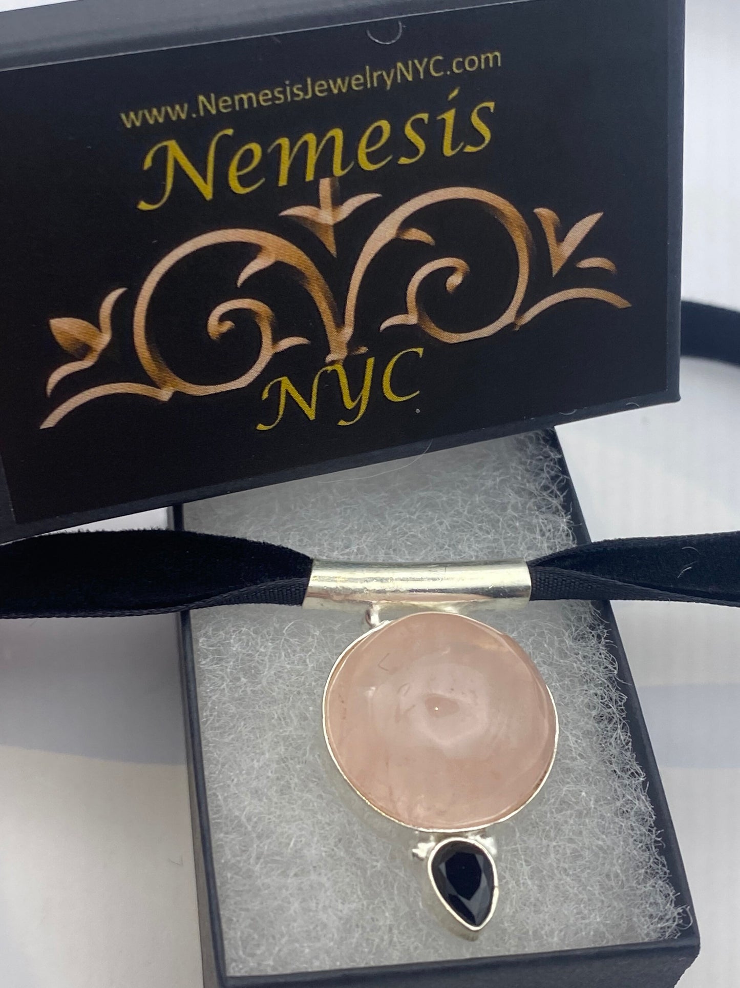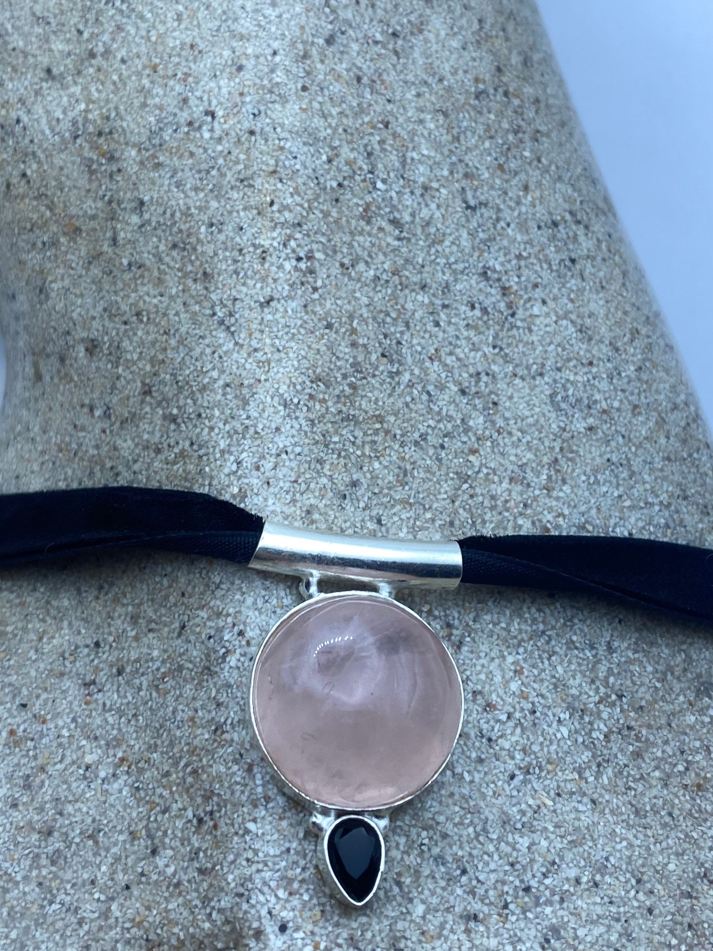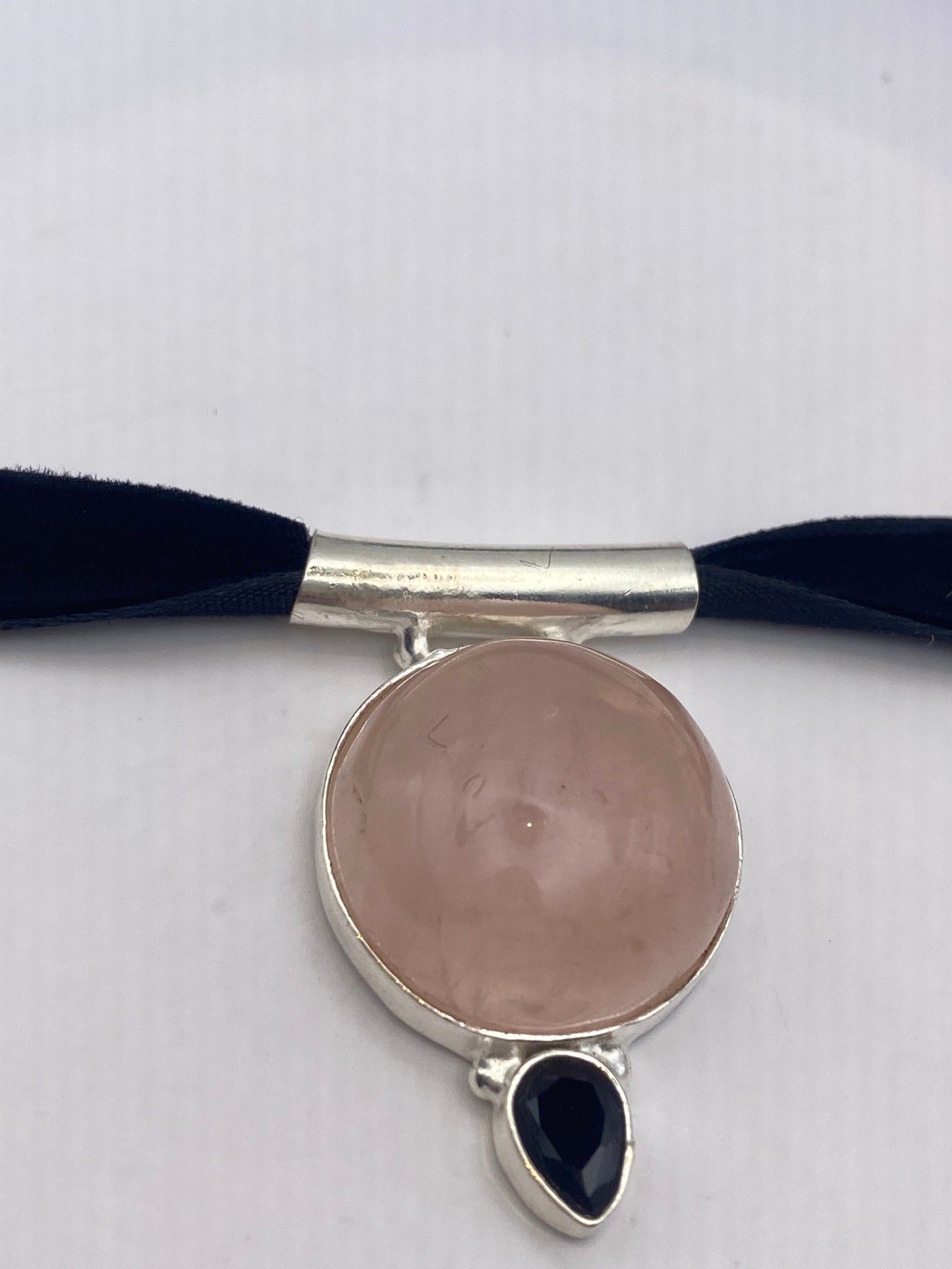 Vintage Antique Pink Rose Quartz Choker Necklace set with ruby glass