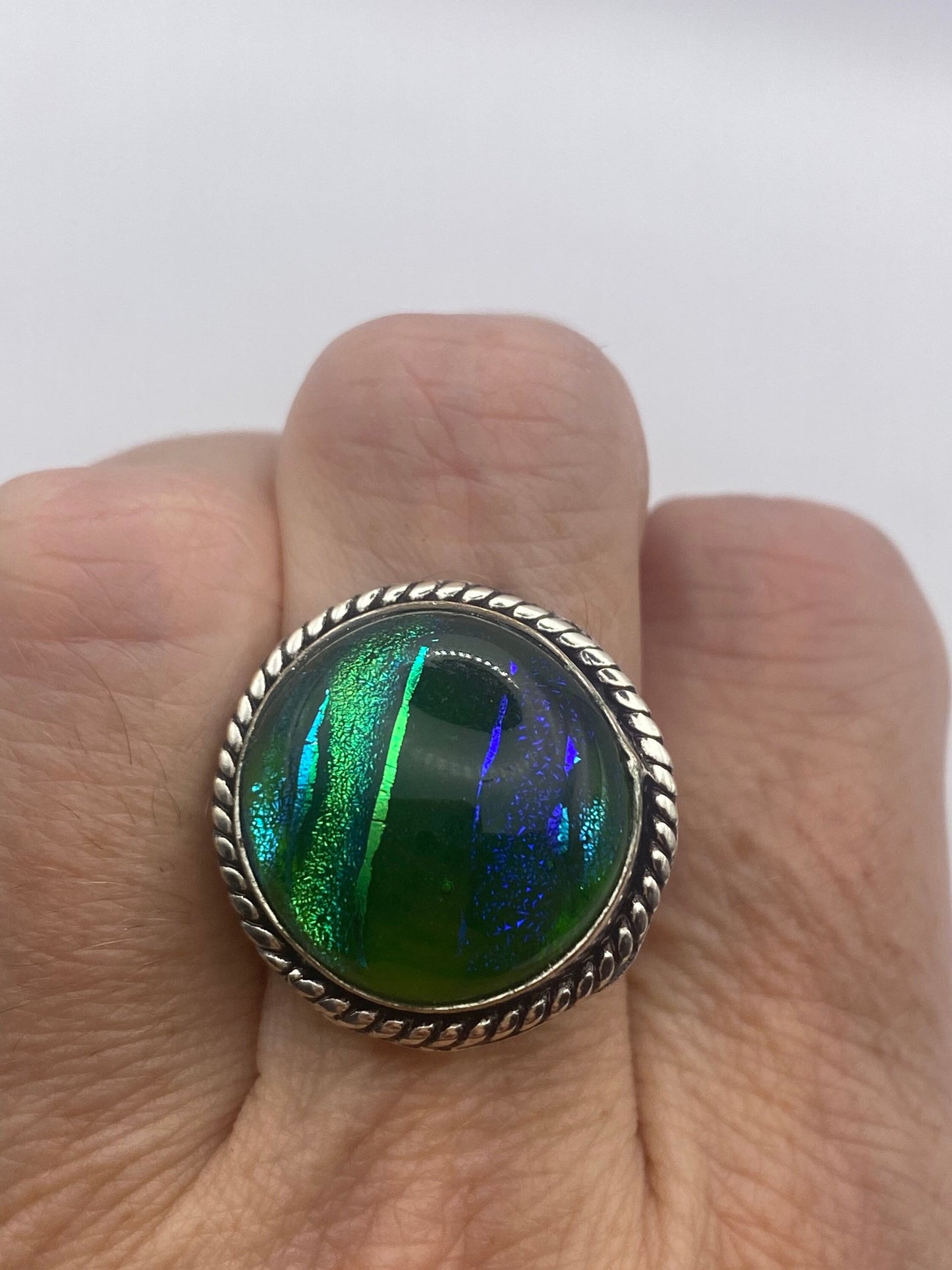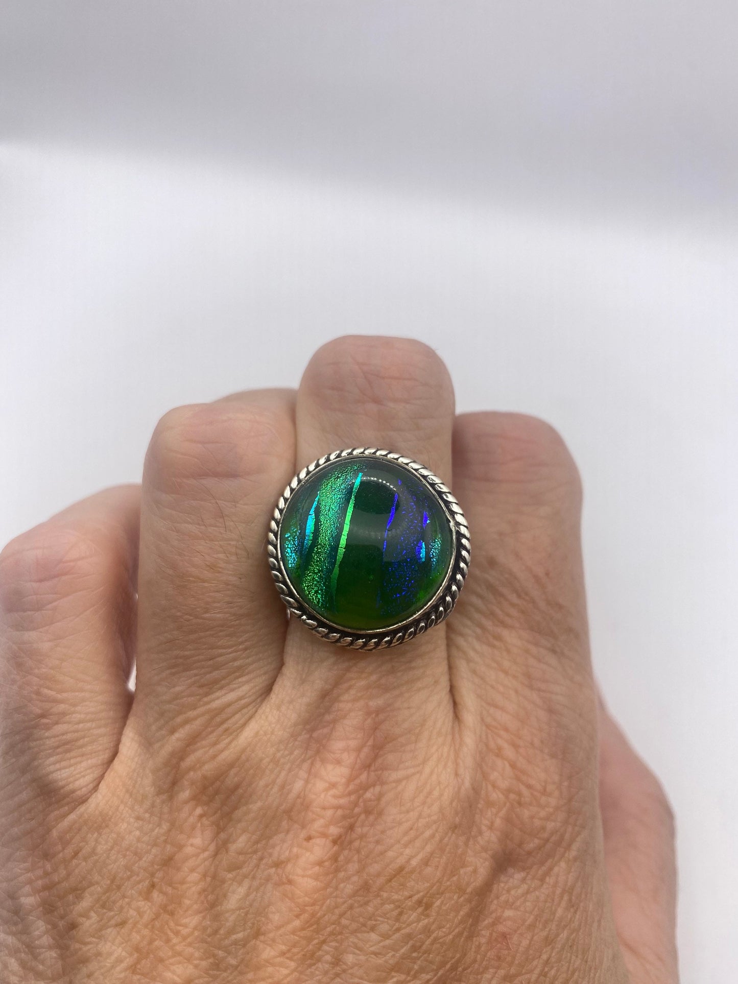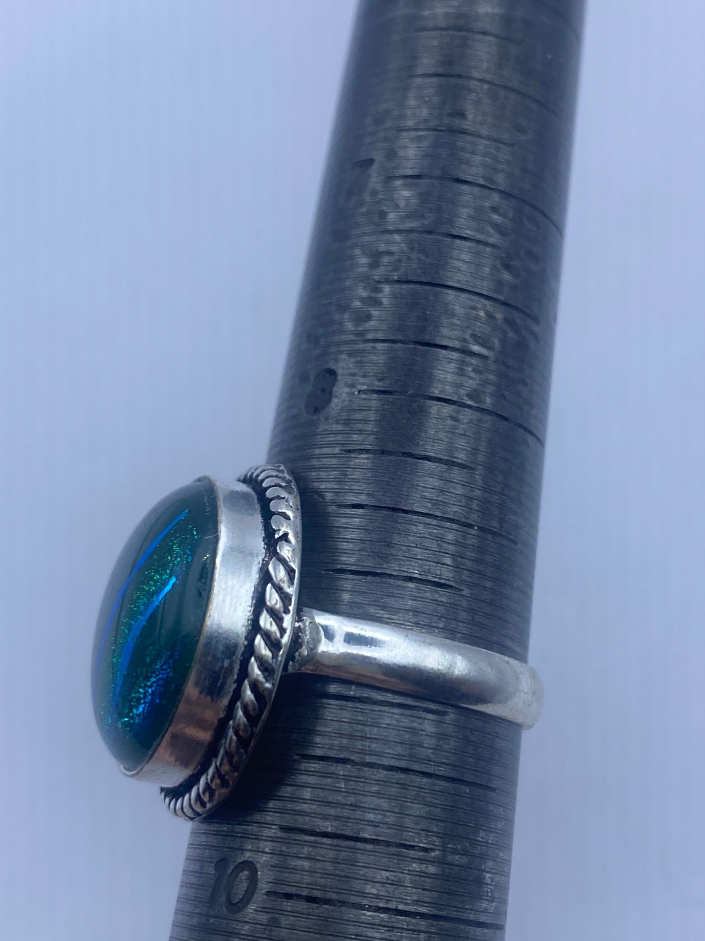 Vintage Aqua Blue Butterfly Wing Art Glass Ring