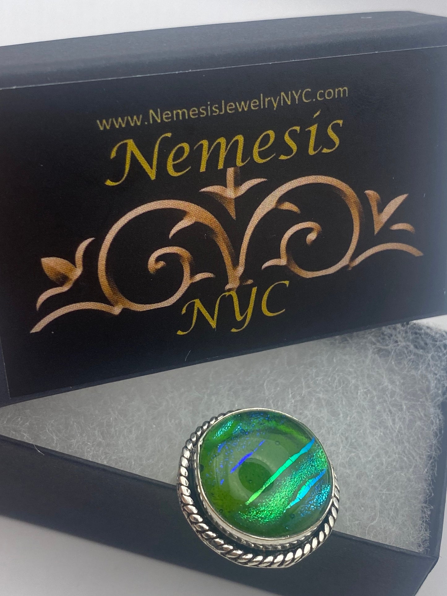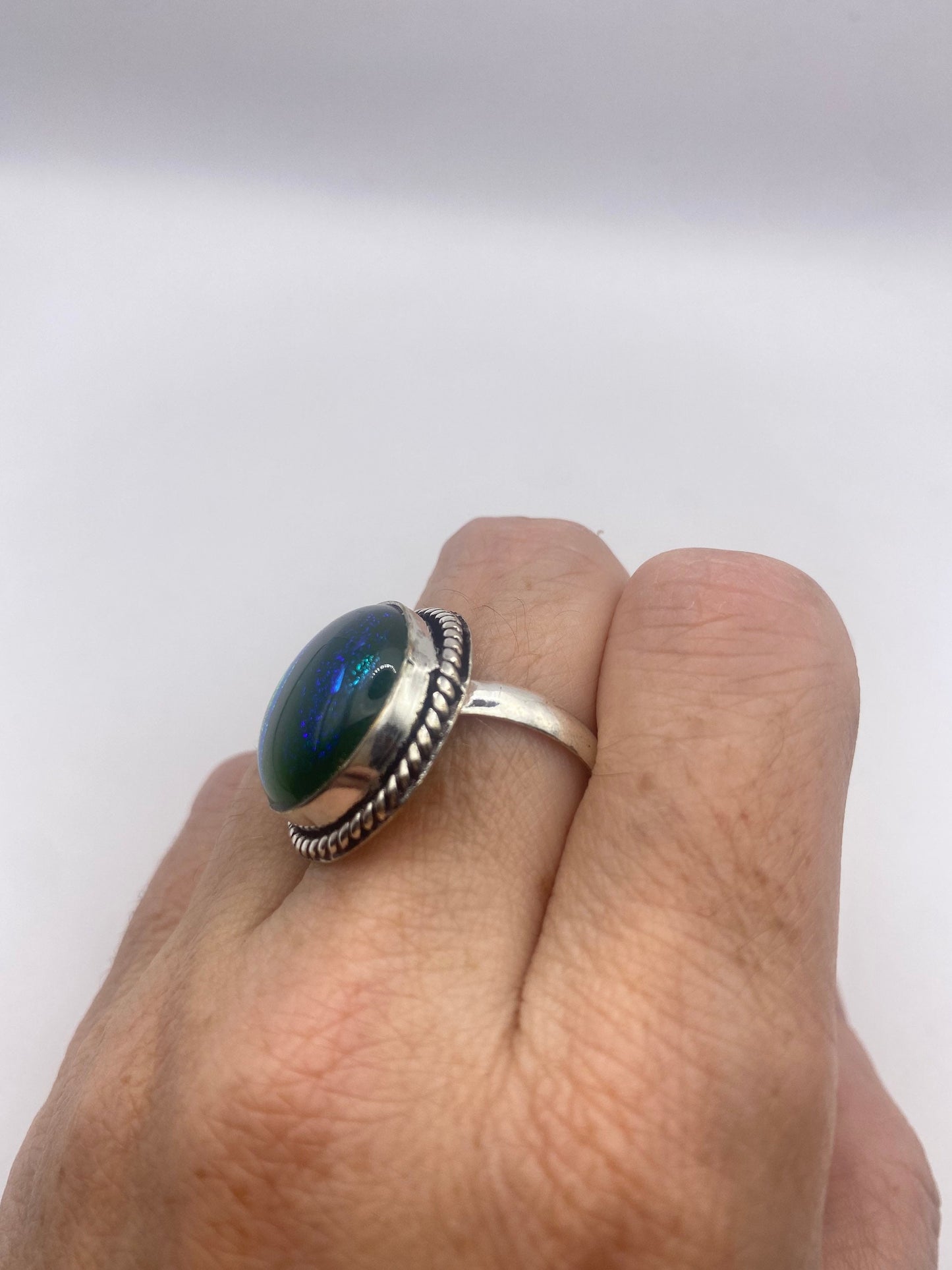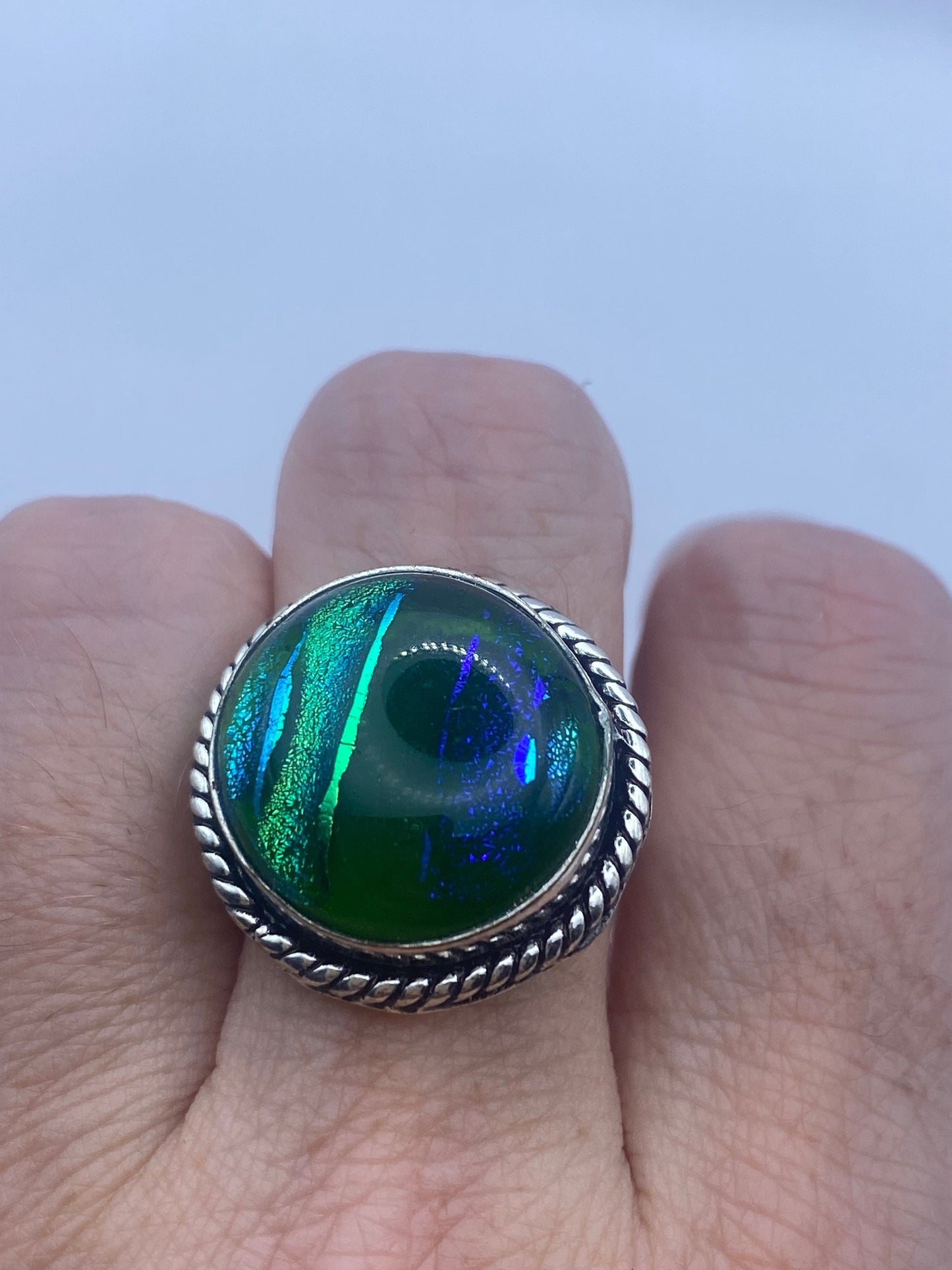 Vintage Aqua Blue Butterfly Wing Art Glass Ring