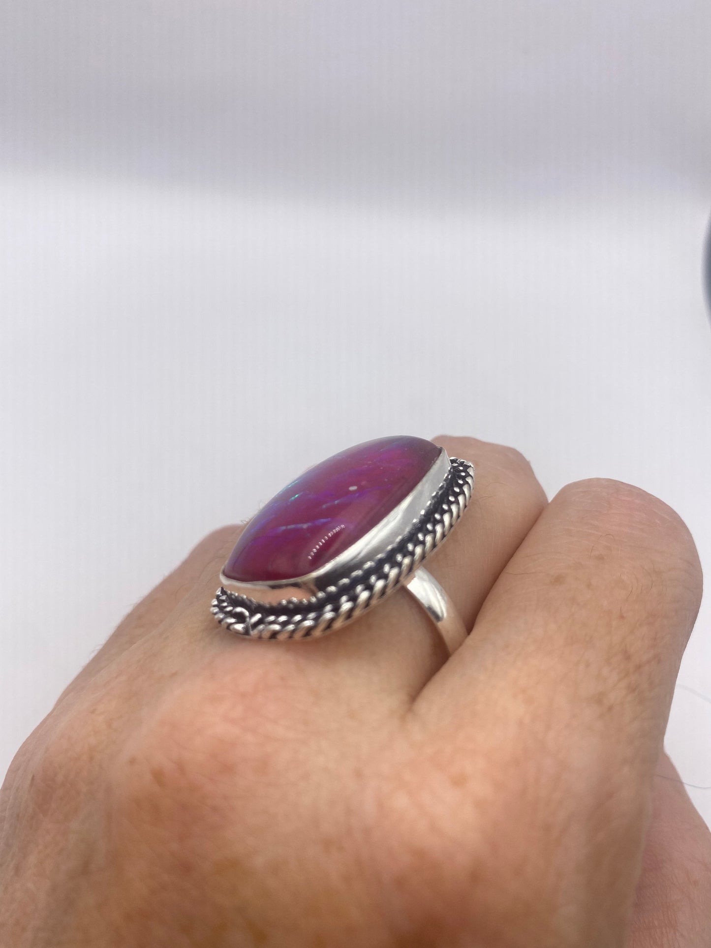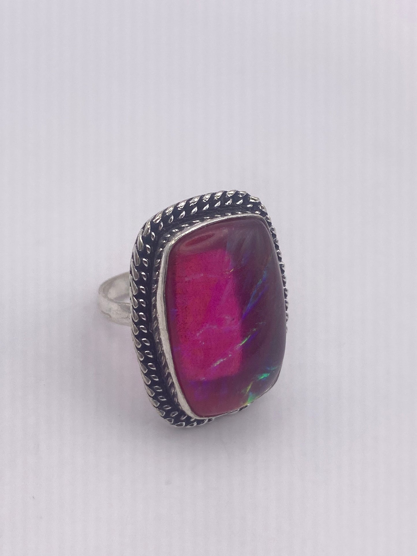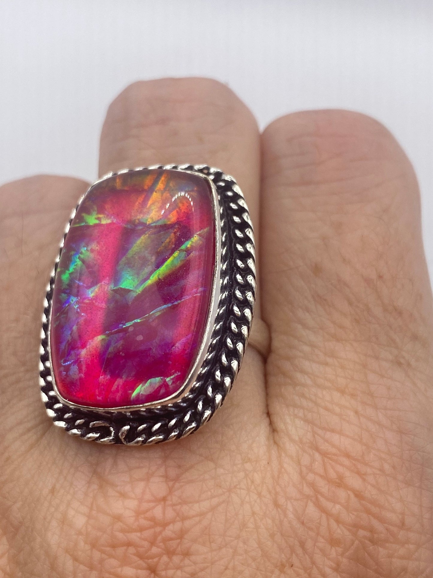 Vintage Aqua Pink Butterfly Wing Art Glass Ring
