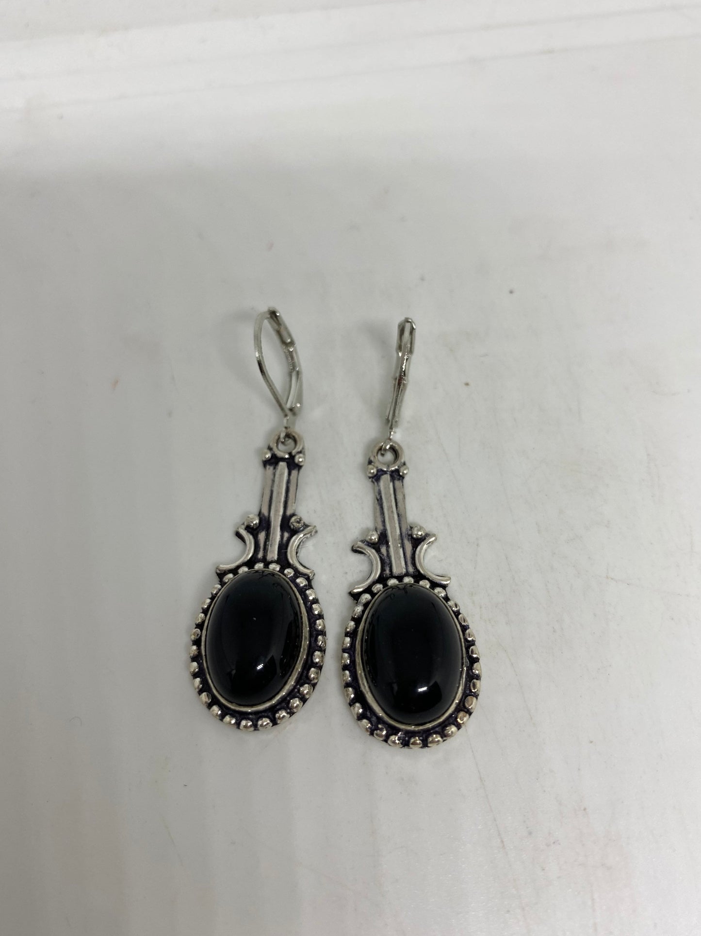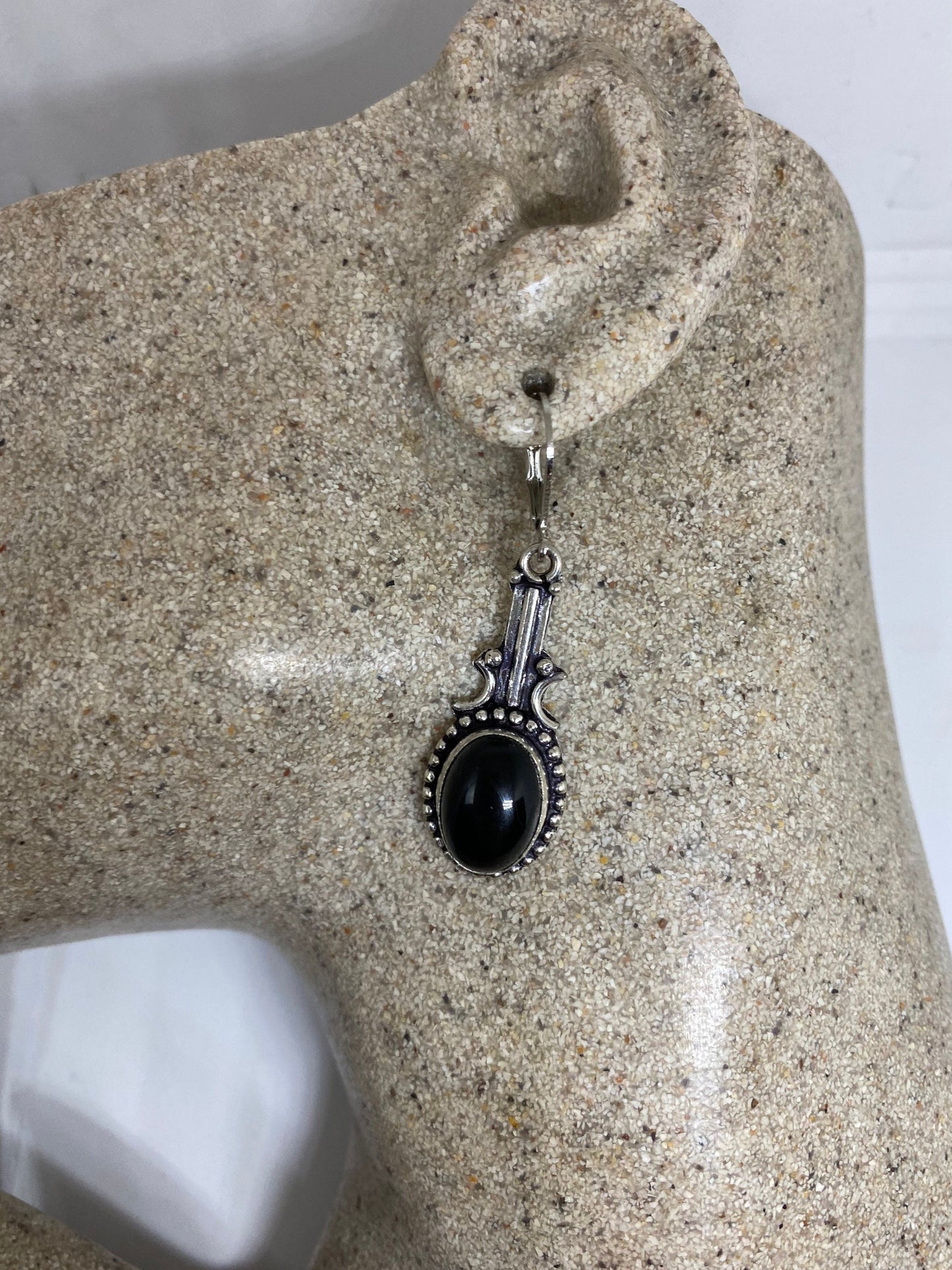 Vintage Black Earring Onyx 925 Sterling Silver Deco Dangle Chandelier