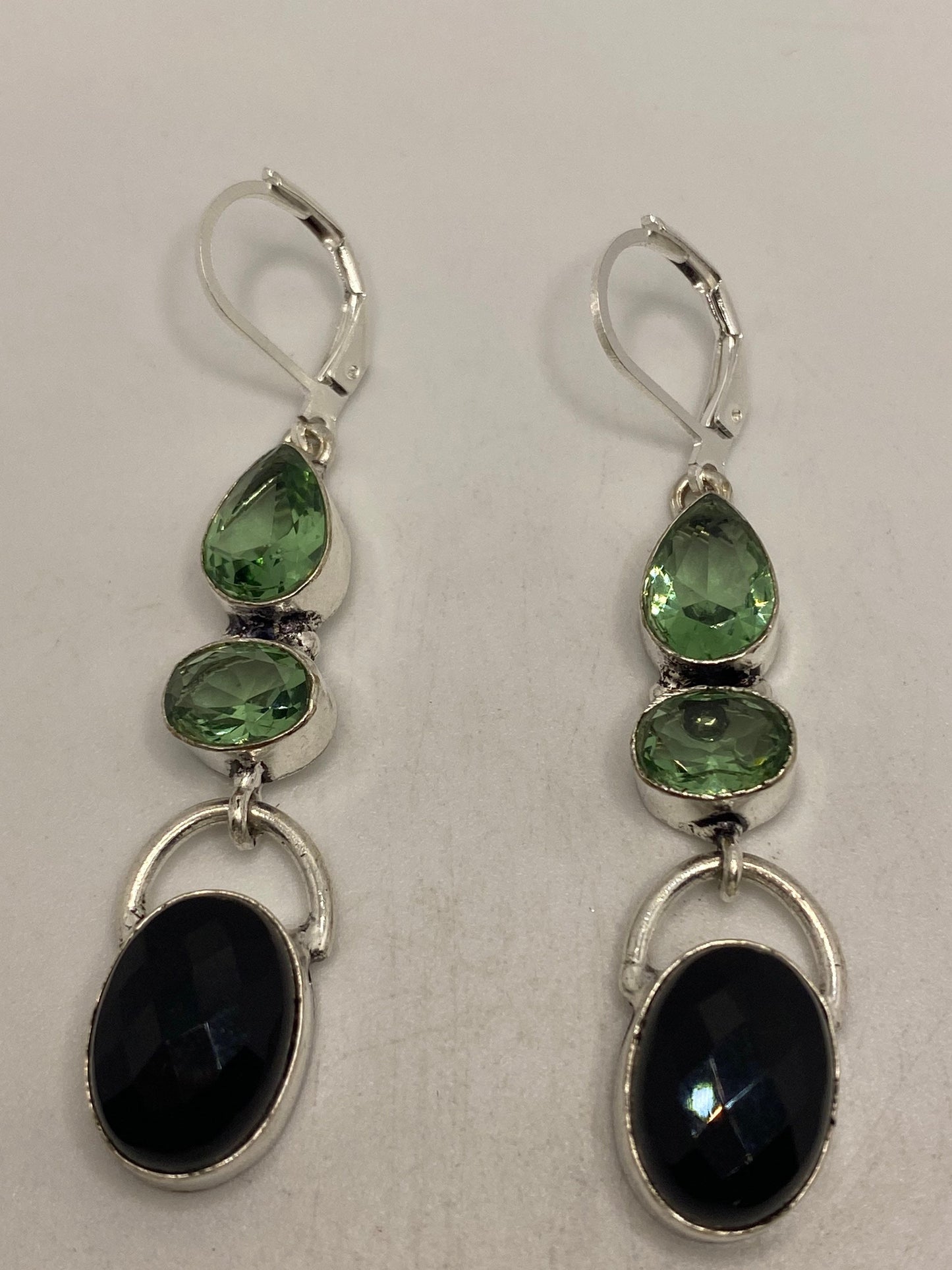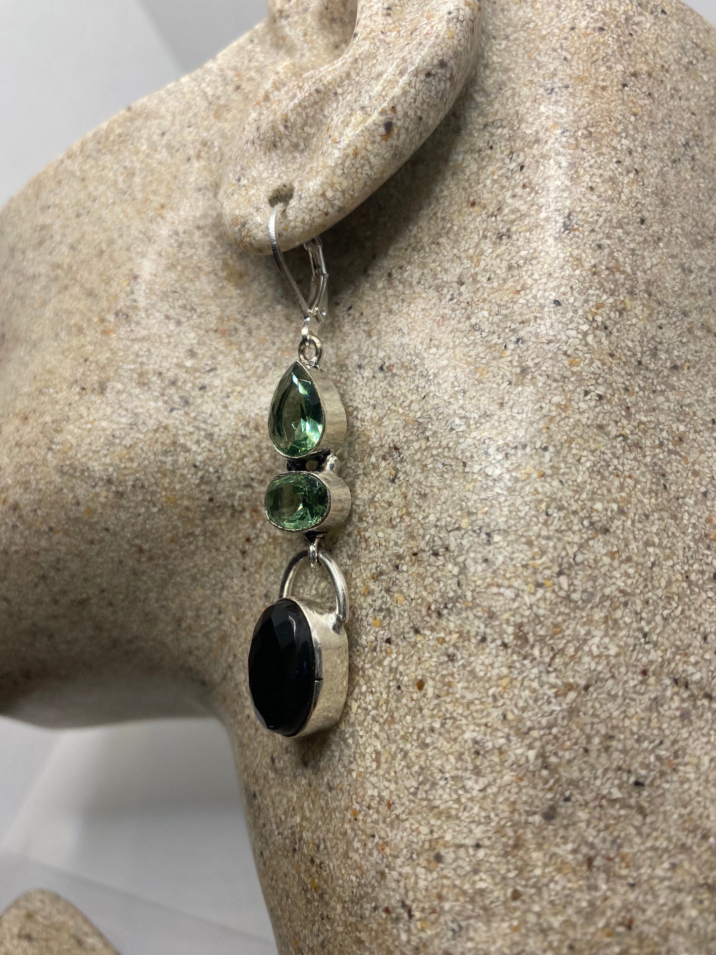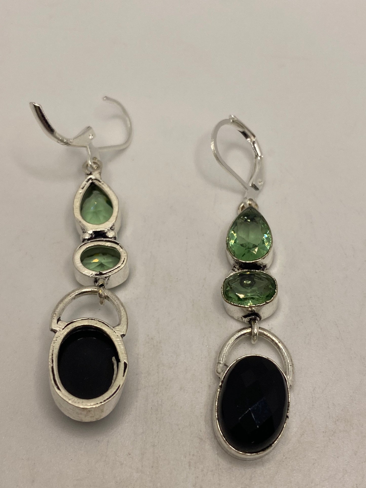 Vintage Black Onyx Green Fluorite 925 Sterling Silver Deco Dangle Chandelier