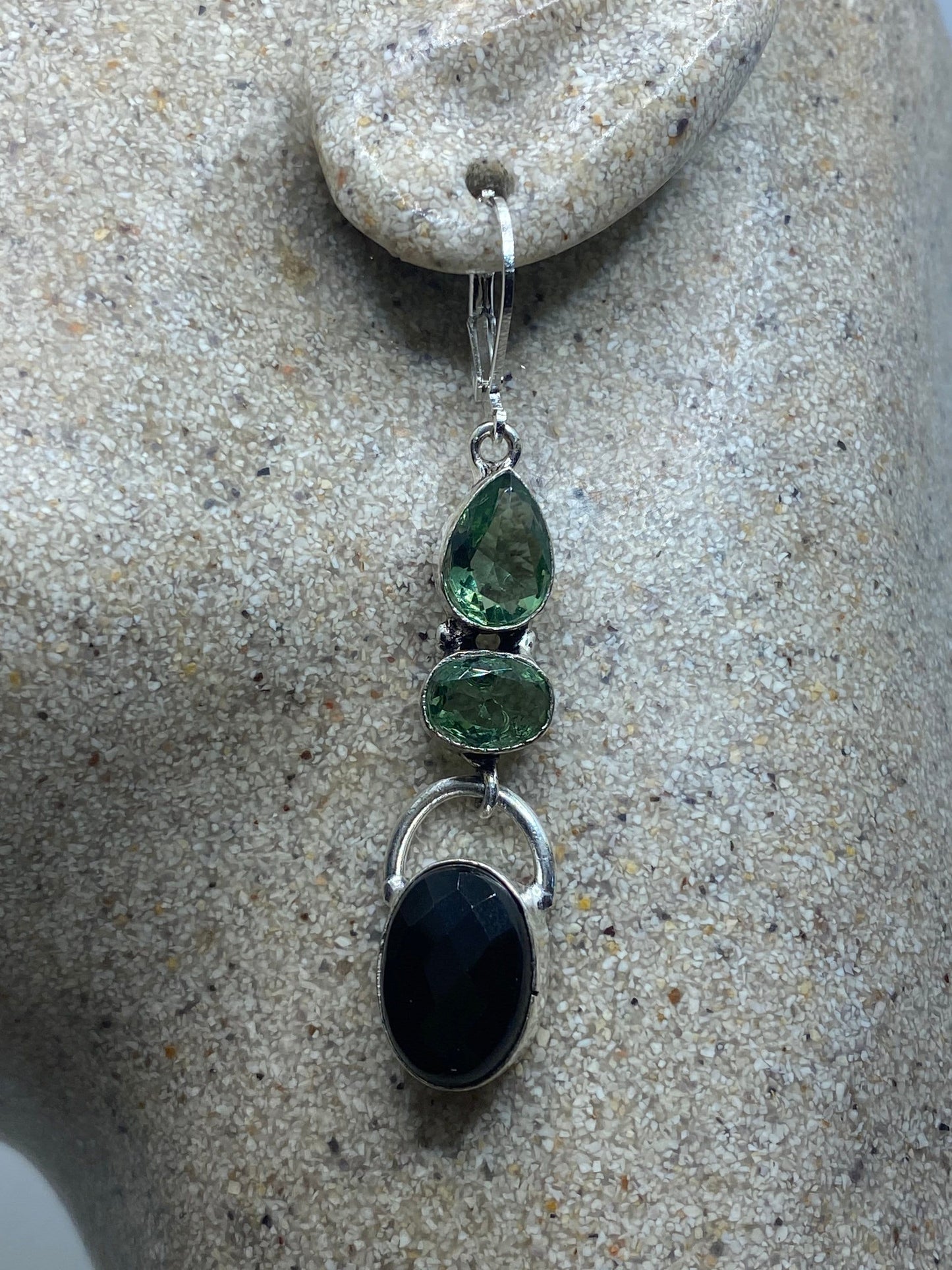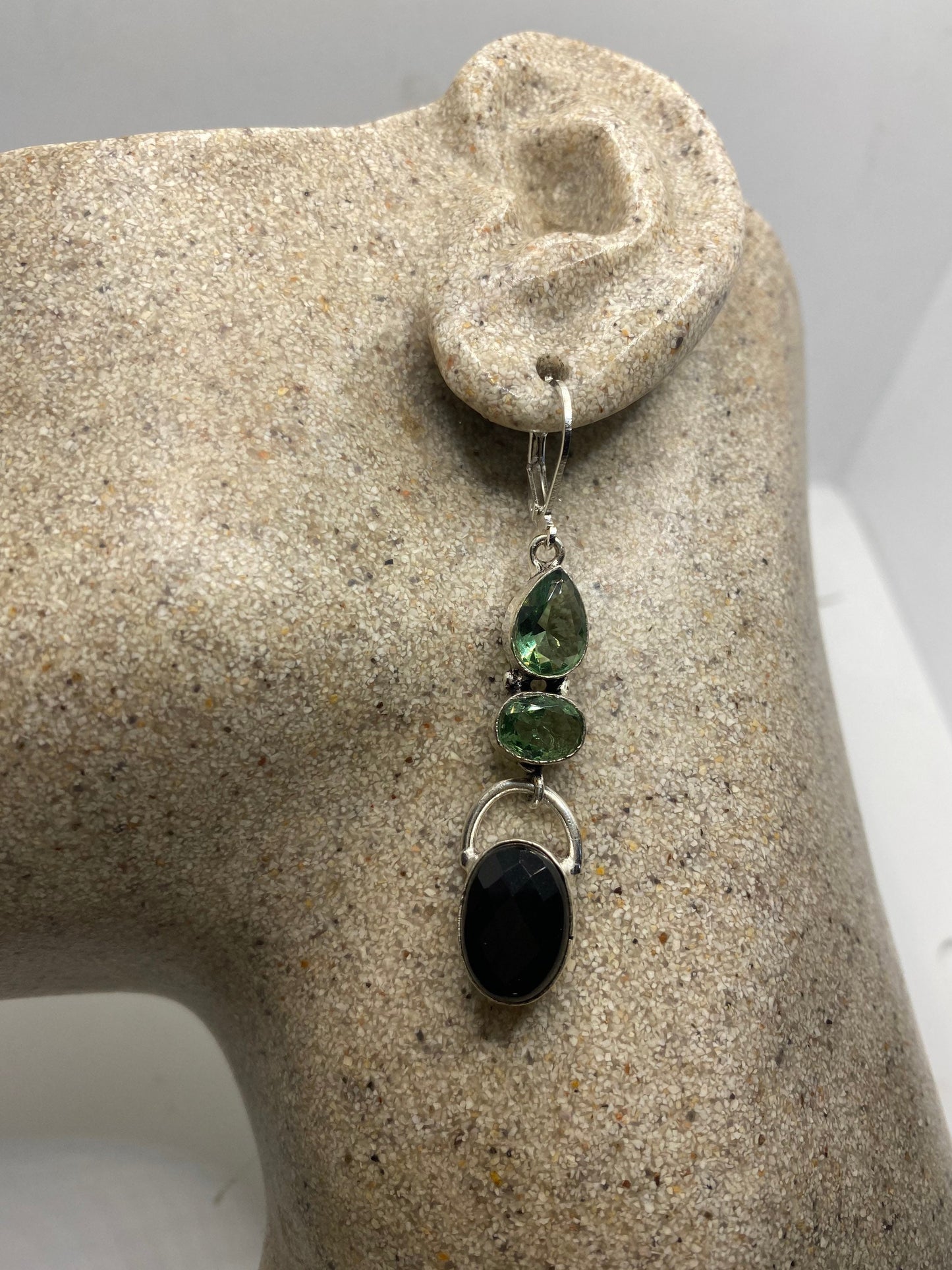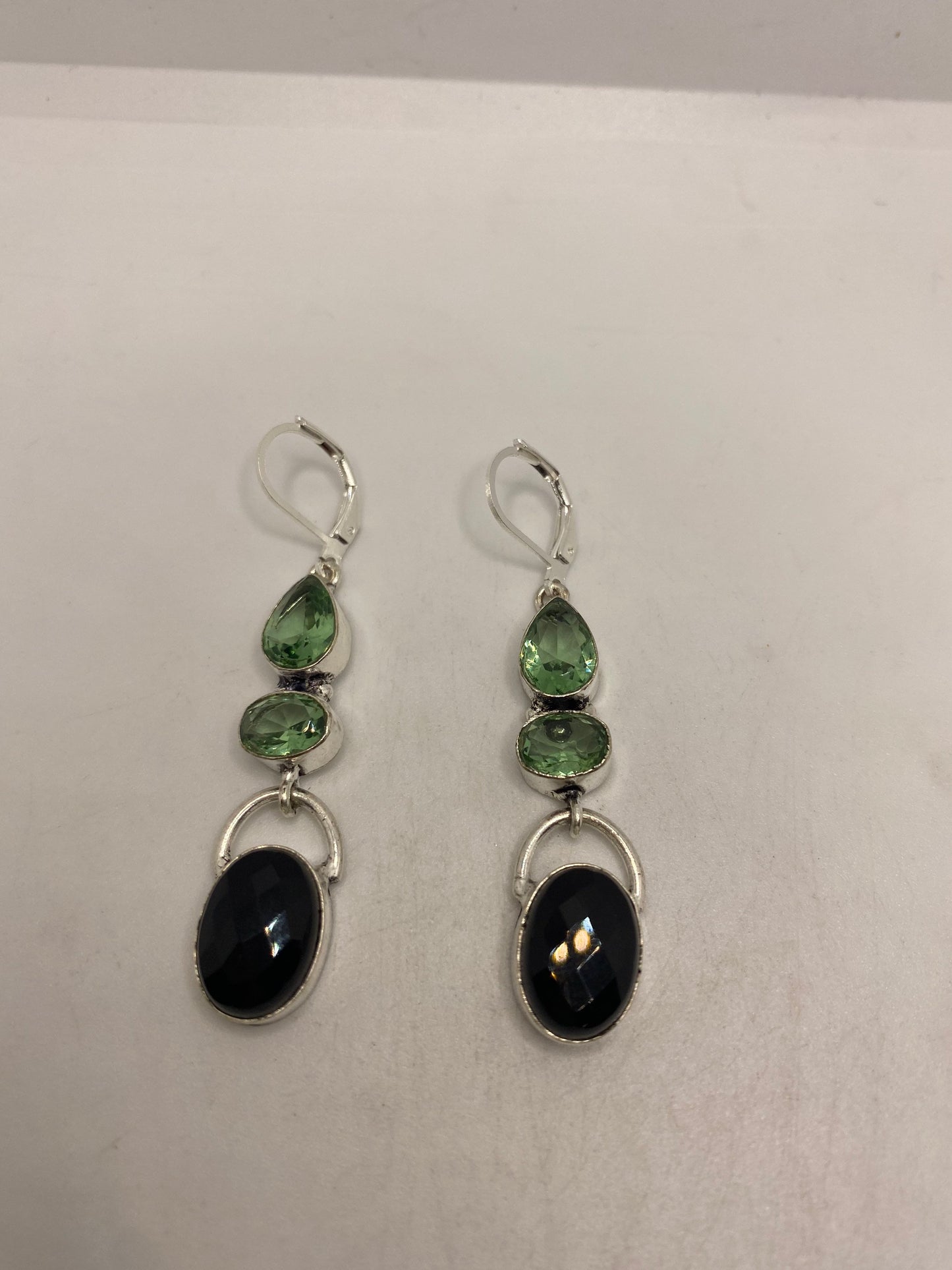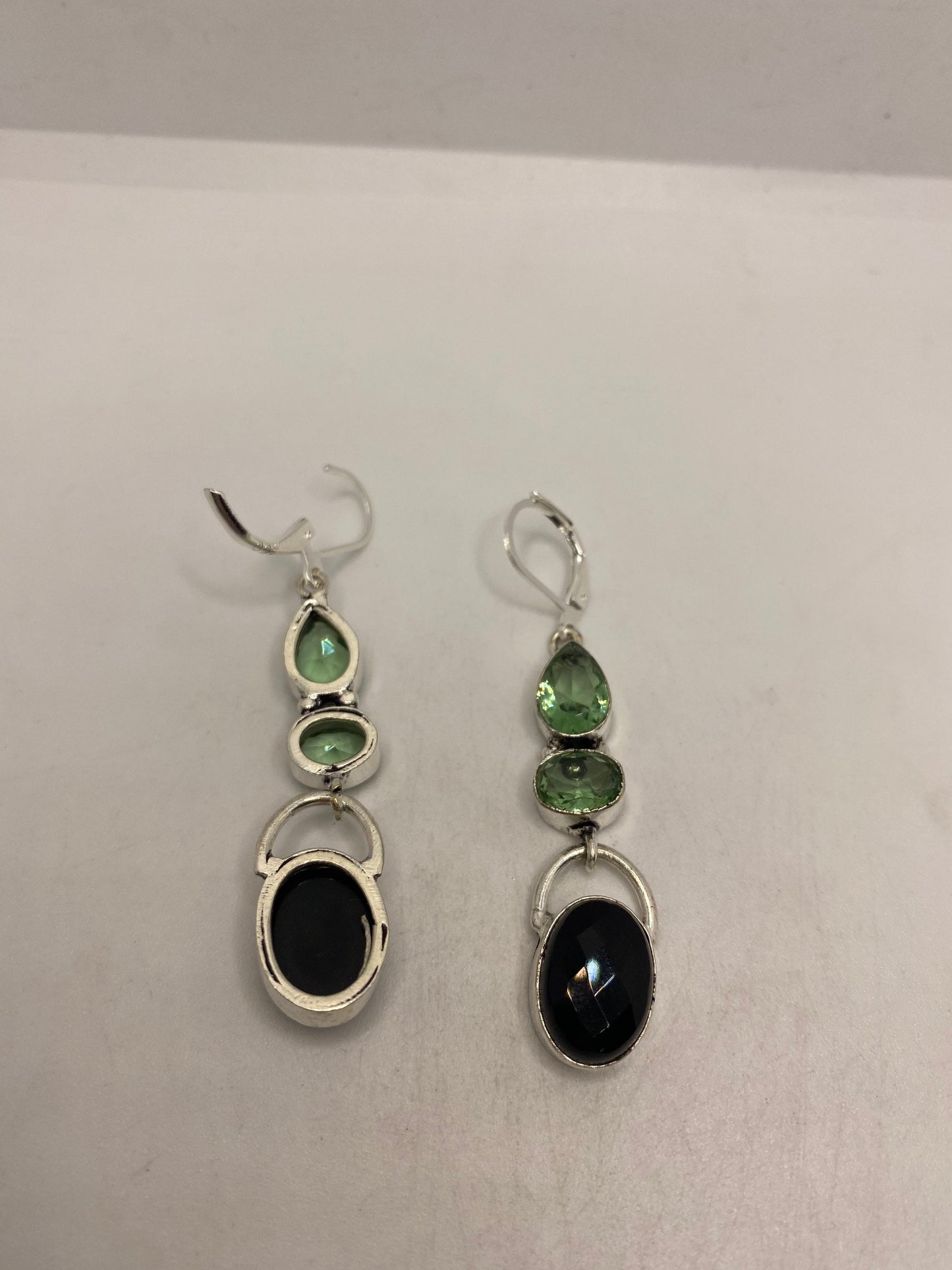 Vintage Black Onyx Green Fluorite 925 Sterling Silver Deco Dangle Chandelier